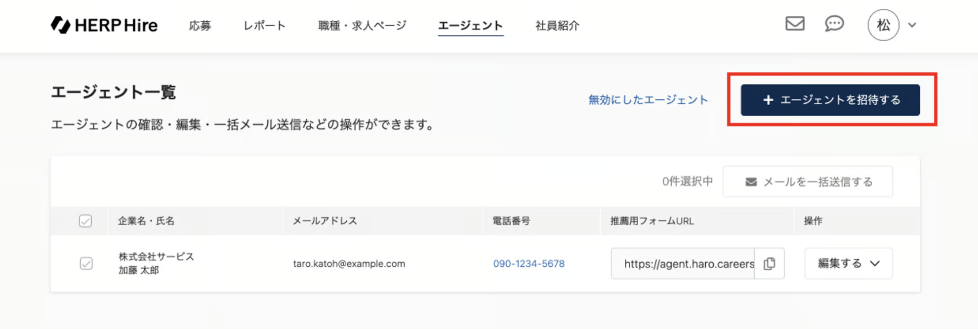 エージェントから推薦を受け付けるためにエージェント担当者を招待します。
