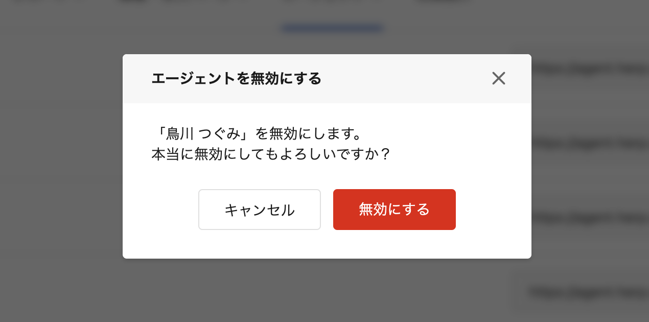 なお1度無効にしたエージェントでも、再度有効可することができます。