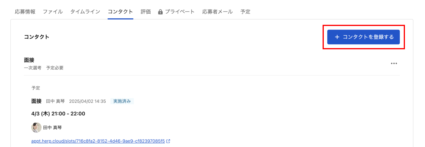 応募詳細上部の「コンタクトを登録する」から作成する
