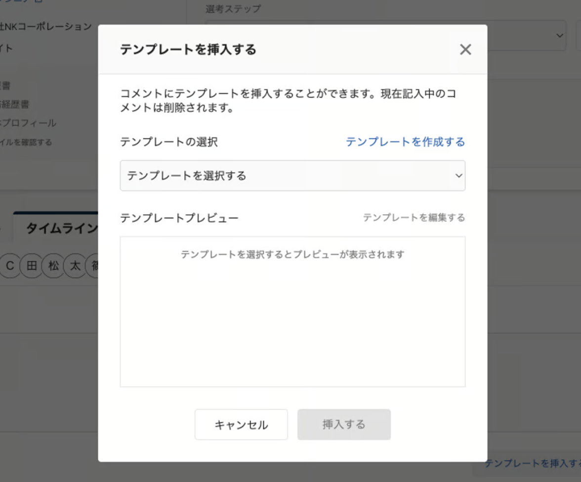 あらかじめ作成したコメントテンプレートを挿入することができます。