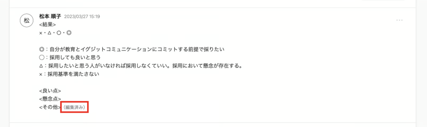 コメントの編集が完了すると、当該コメントの末尾に