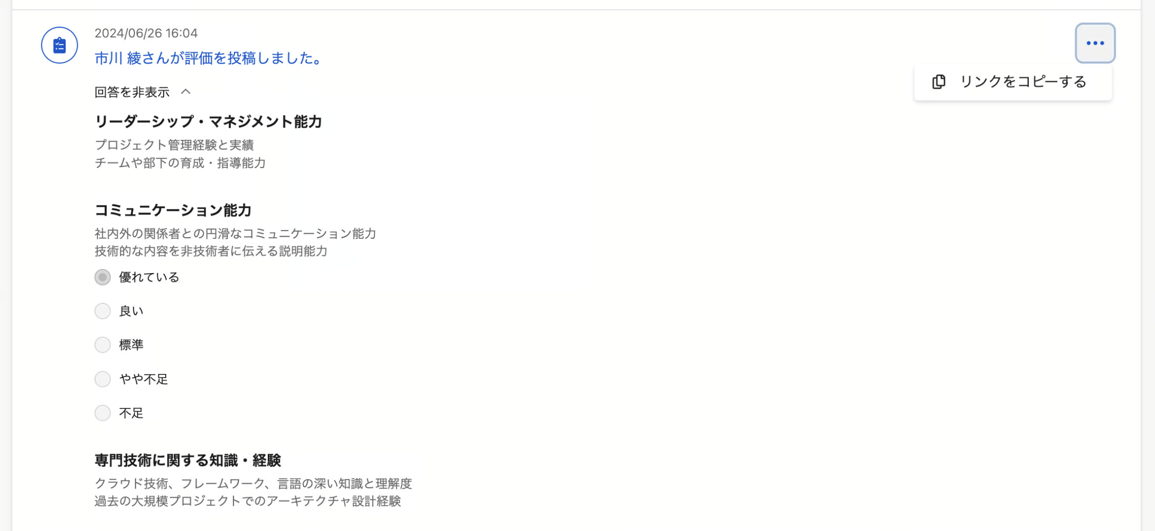 コメントだけでなく、アクティビティログや評価導線のリンクもコピー可能です。