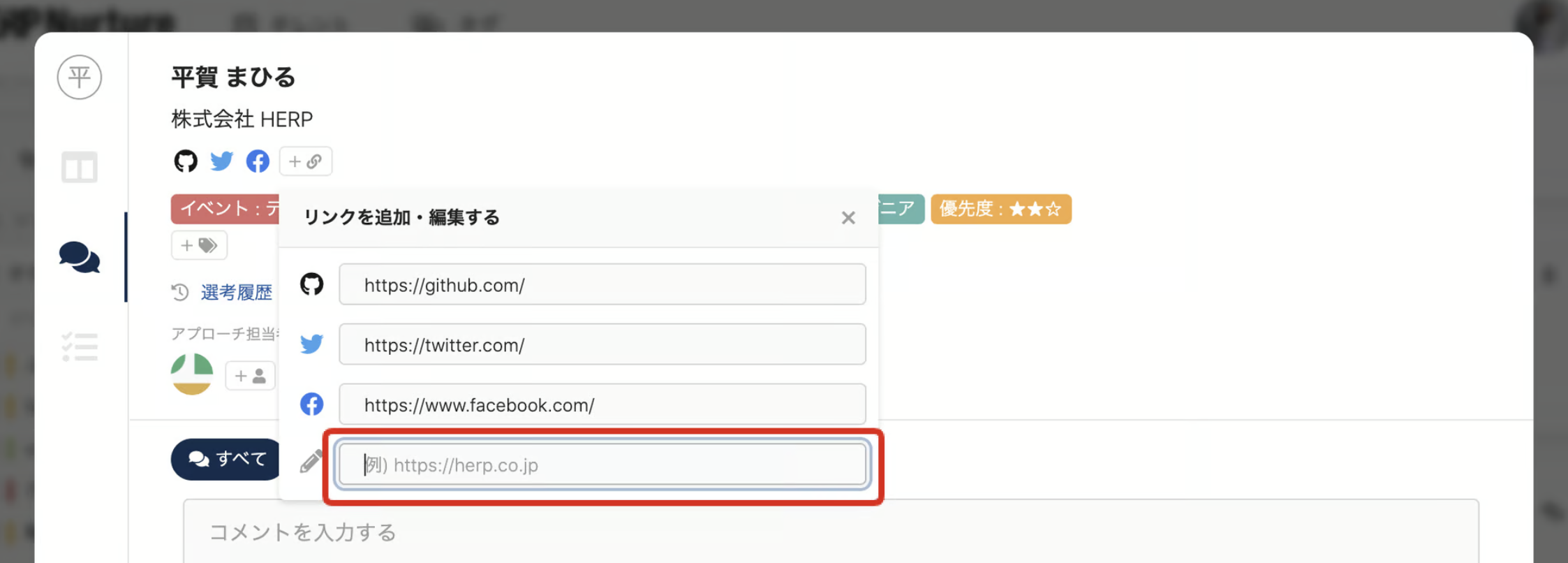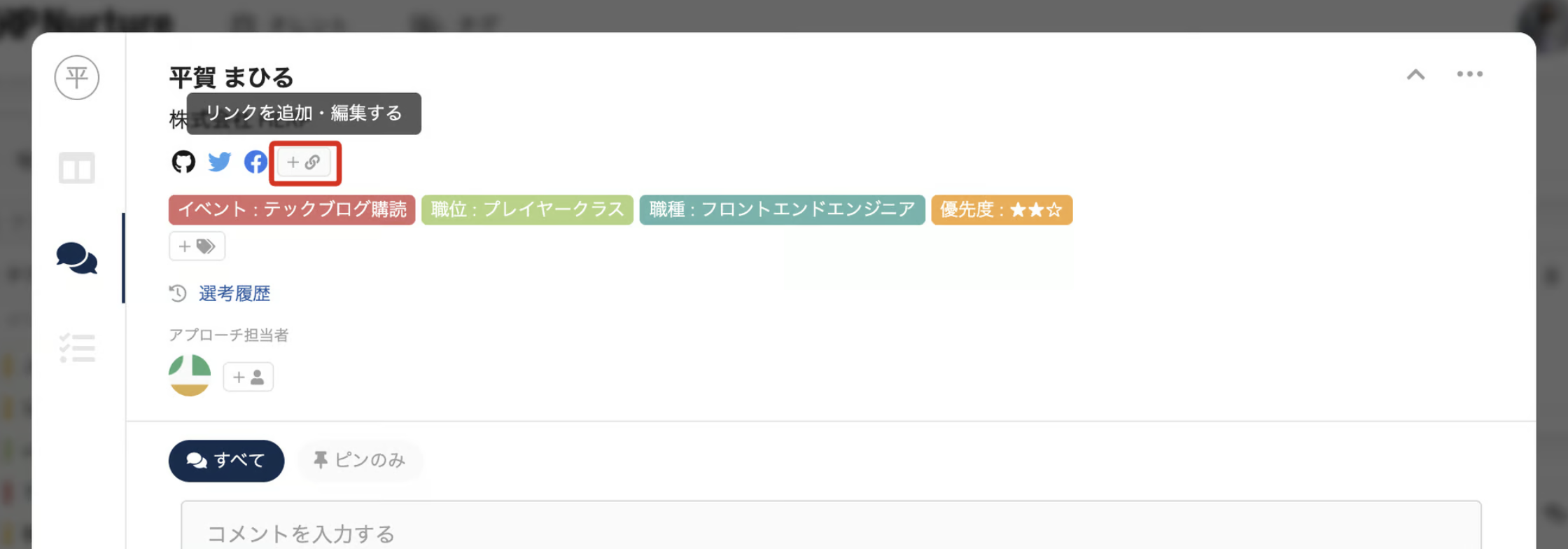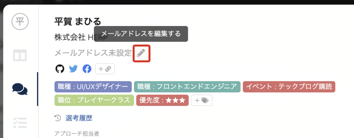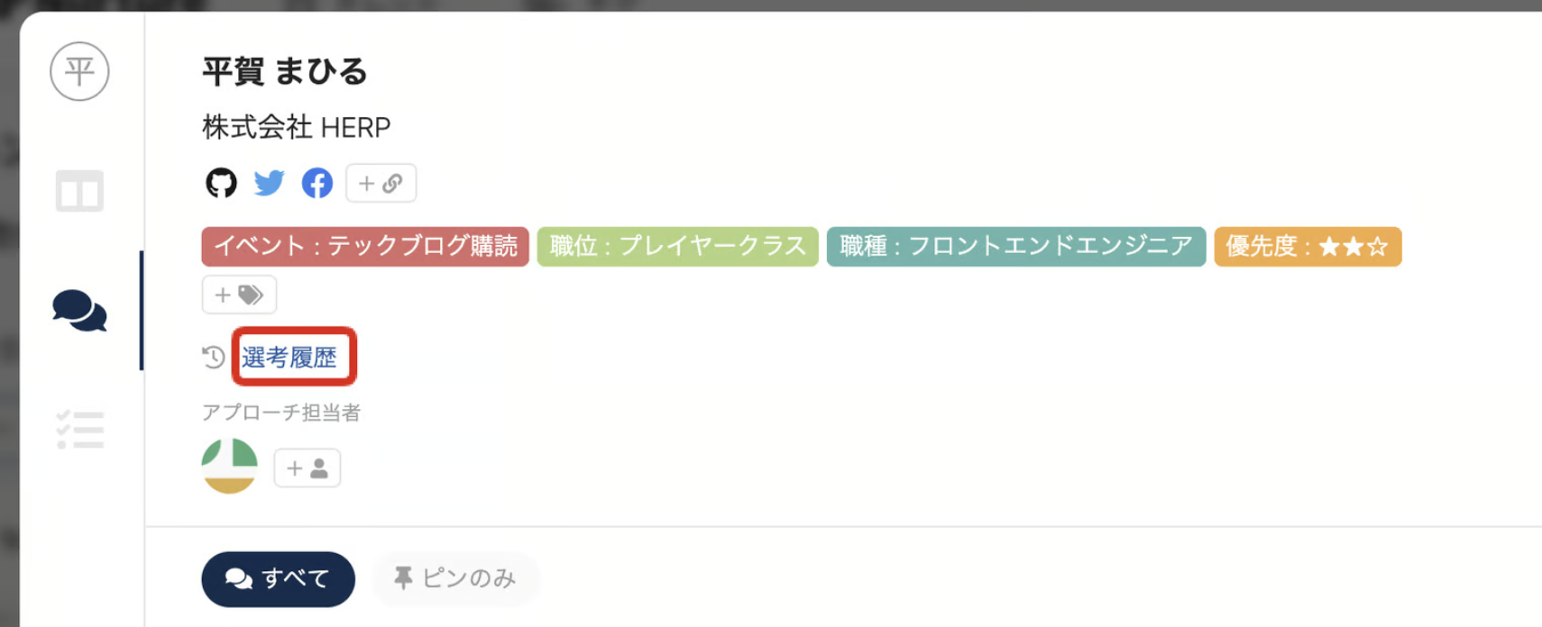 HERP Nurture では、タレントへの窓口となるアプローチ担当者をタレントごとに設定することができます。アプローチ担当者を設定いただくと、担当者ごとに絞り込みができたり、そのタレントへのコメントがアプローチ担当者にDMで通知されるようになるので、アプローチ担当者が効率的にタレントの管理を行うことができます。