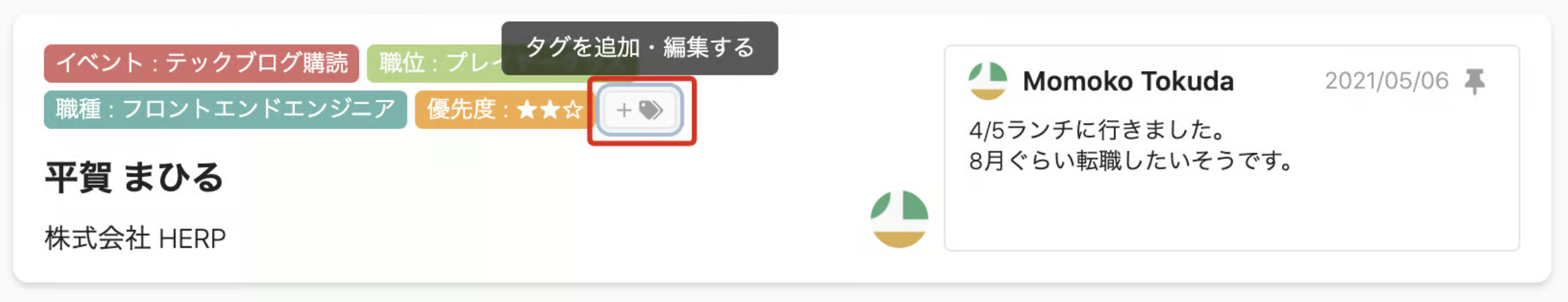 HERP Nurtureでは自由にカスタマイズできるタグ情報を用いてタレントを管理することができます。タグの作成方法はこちらのガイドをご確認ください。