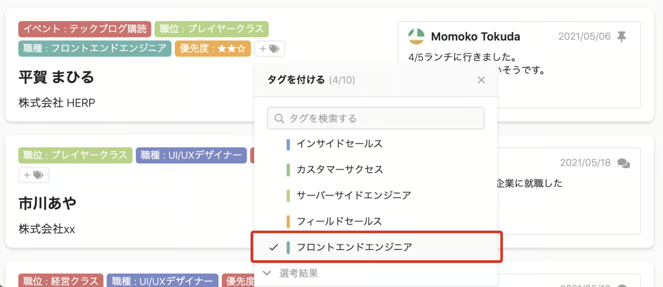 しばらくアプローチする予定がないタレントなどは削除せず、タグによって管理することをおすすめします。
