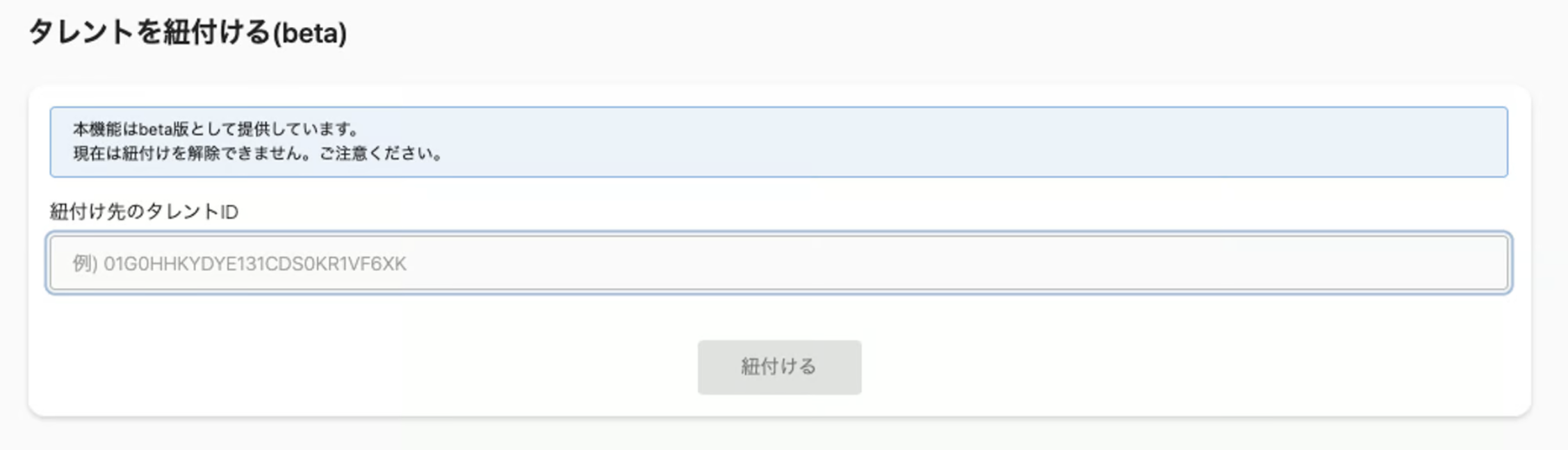 一度紐付けを実行した場合、後からタレントの紐付けを解除することはできません。