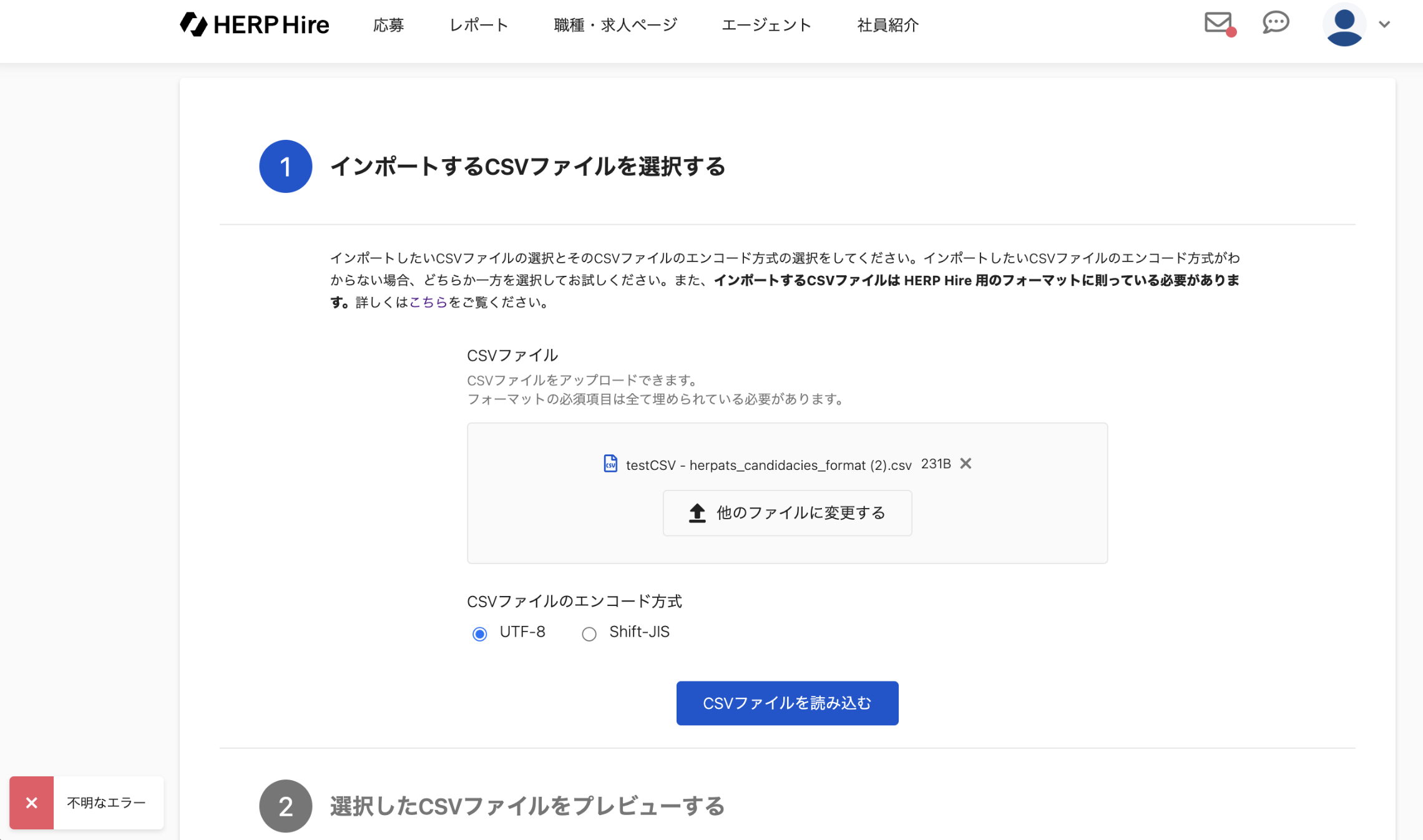 HERP Hire上で作成済みの職種名と、CSV上の職種名が完全一致している必要がありますので、こちらに該当していないかご確認ください