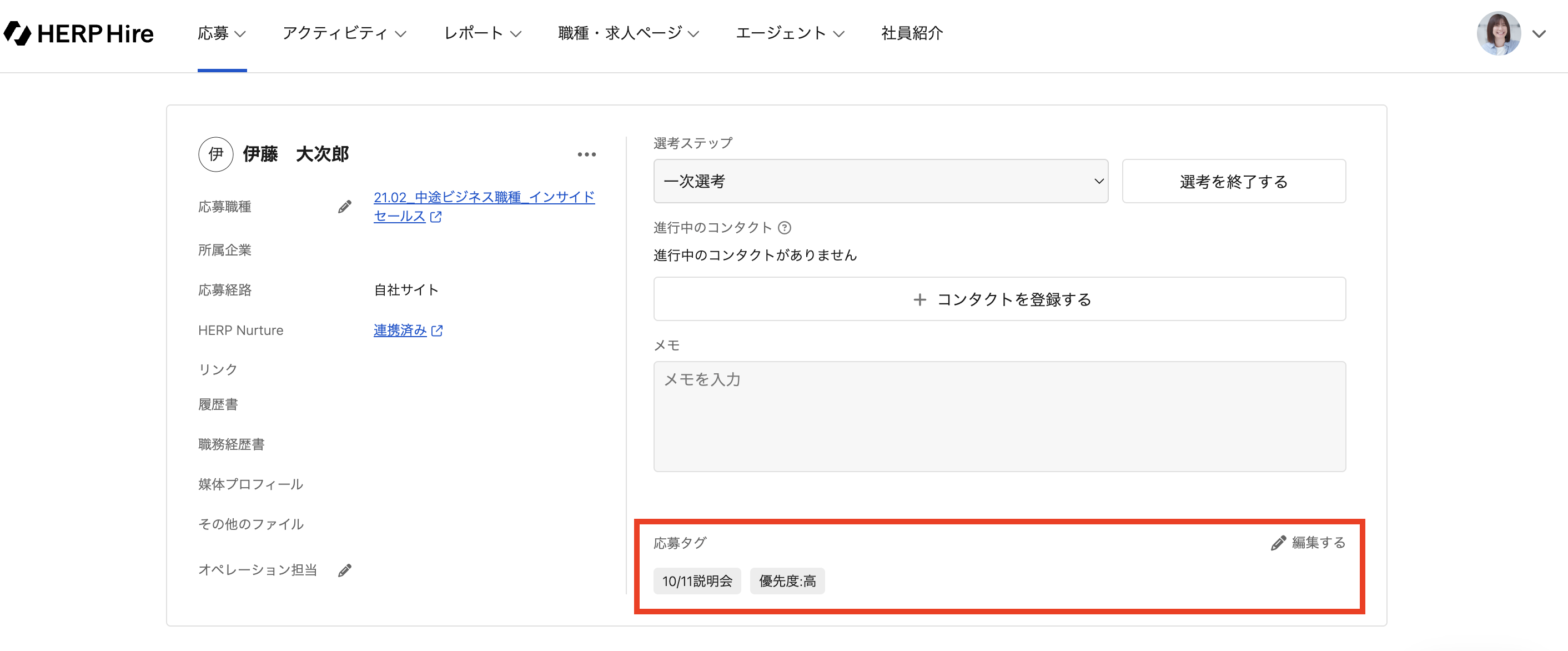 応募タグは、応募一覧および応募詳細画面から付与・取り外しをすることができます。
