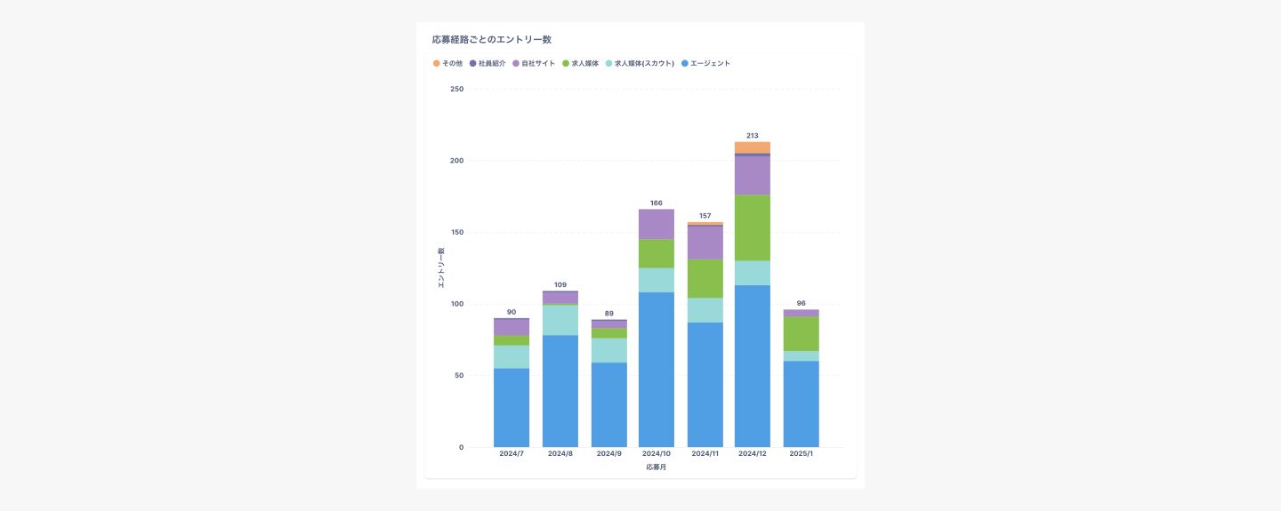 応募経路ごとのエントリー数を、応募月別に確認できます。