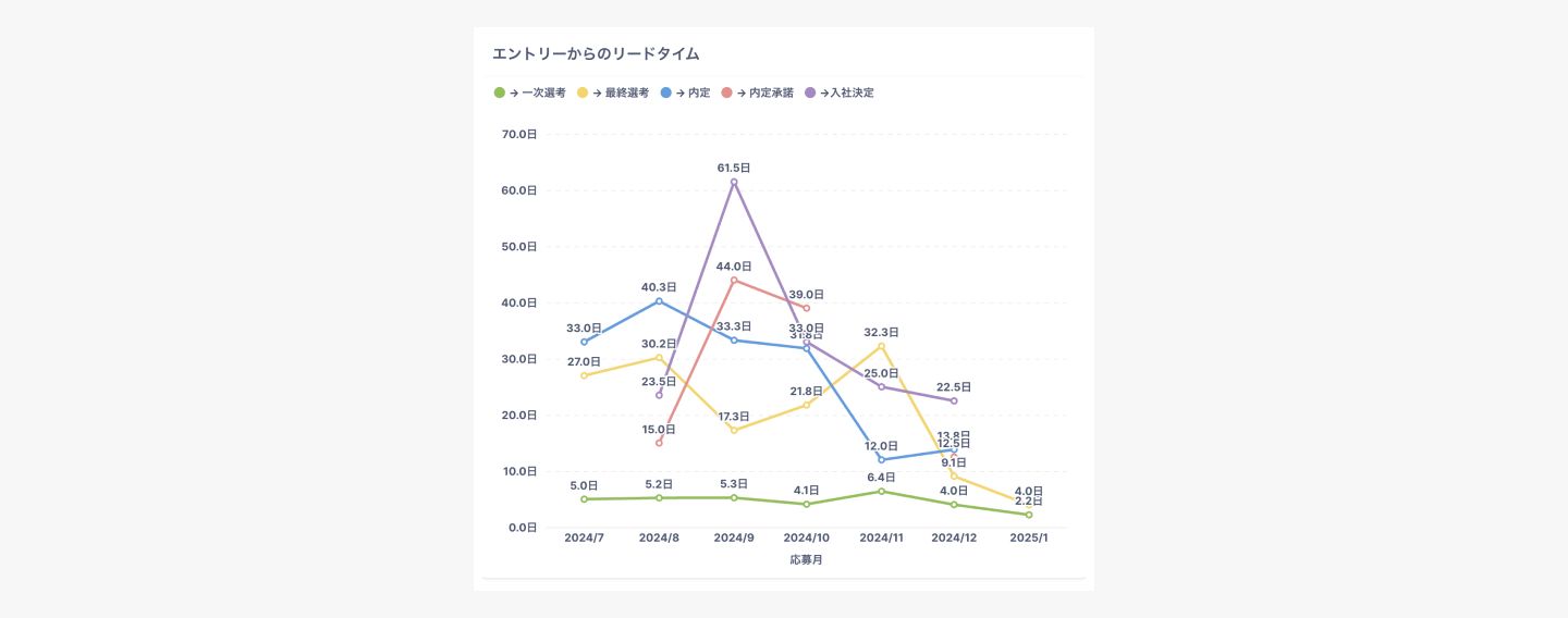 エントリーからの応募月別リードタイムをグラフで確認できます。