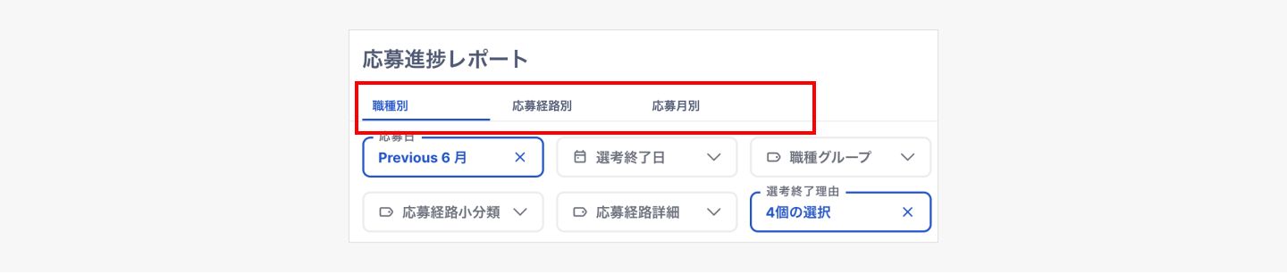 応募進捗レポートは下記の3つのタブから構成されています。