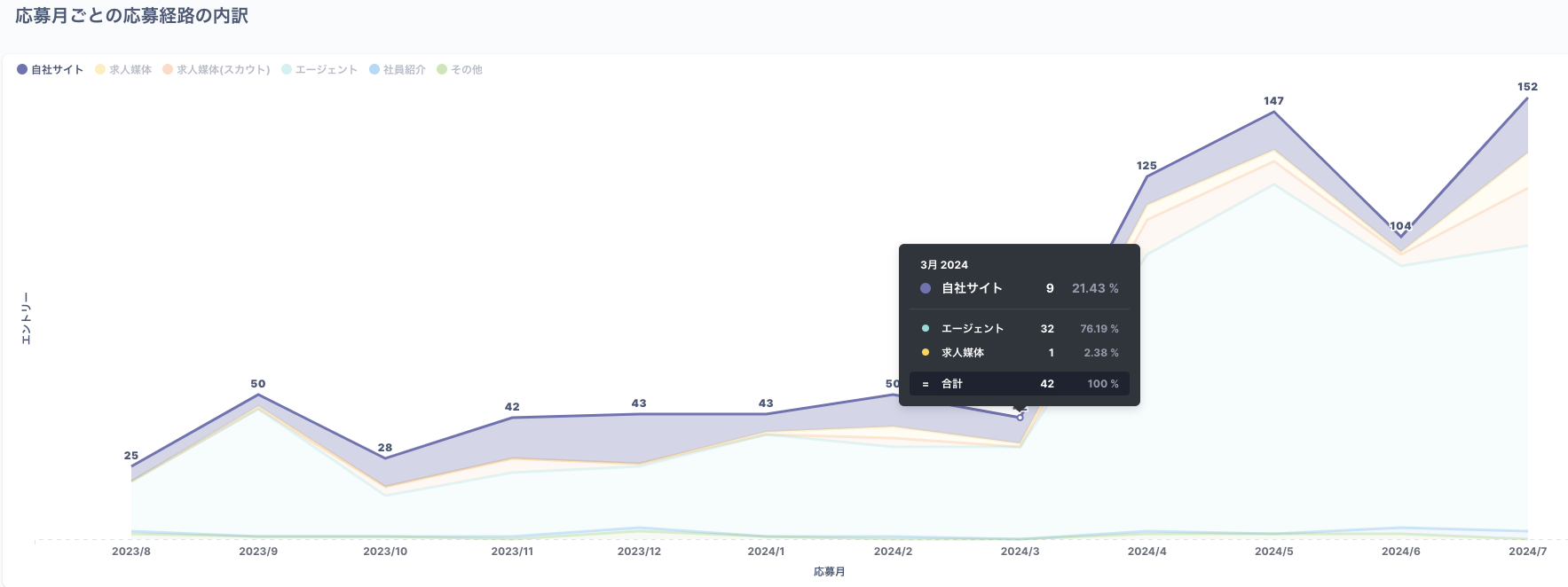 グラフの特定の色にカーソルを合わせると数値の内訳詳細が確認できます。