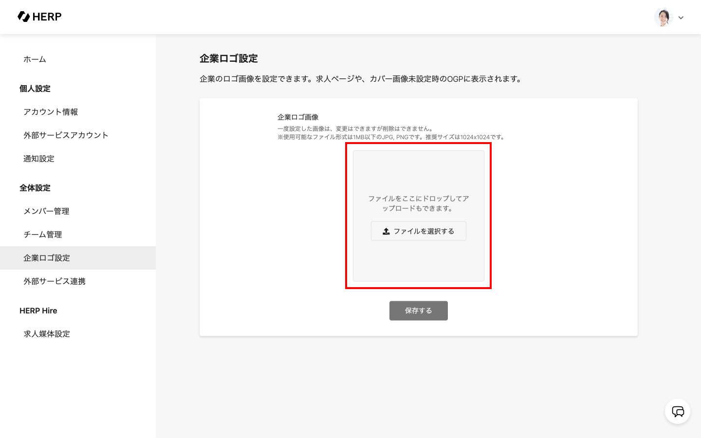 HERP管理画面の「企業ロゴ設定」から設定できます。