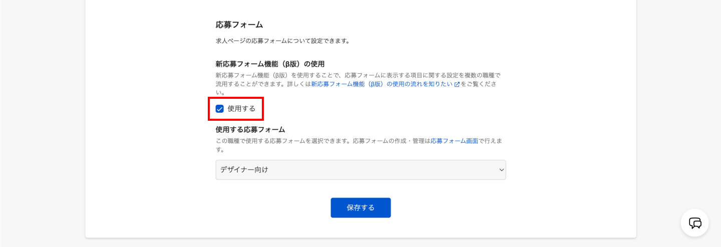 新応募フォームをご利用の場合は「使用する」にチェックを入れる