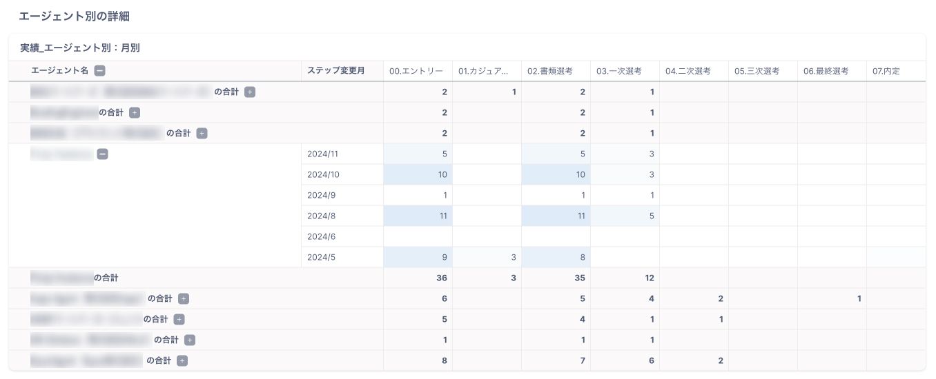 エージェント×選考ステップ変更月ごとにステップ変更数を確認することが可能です。