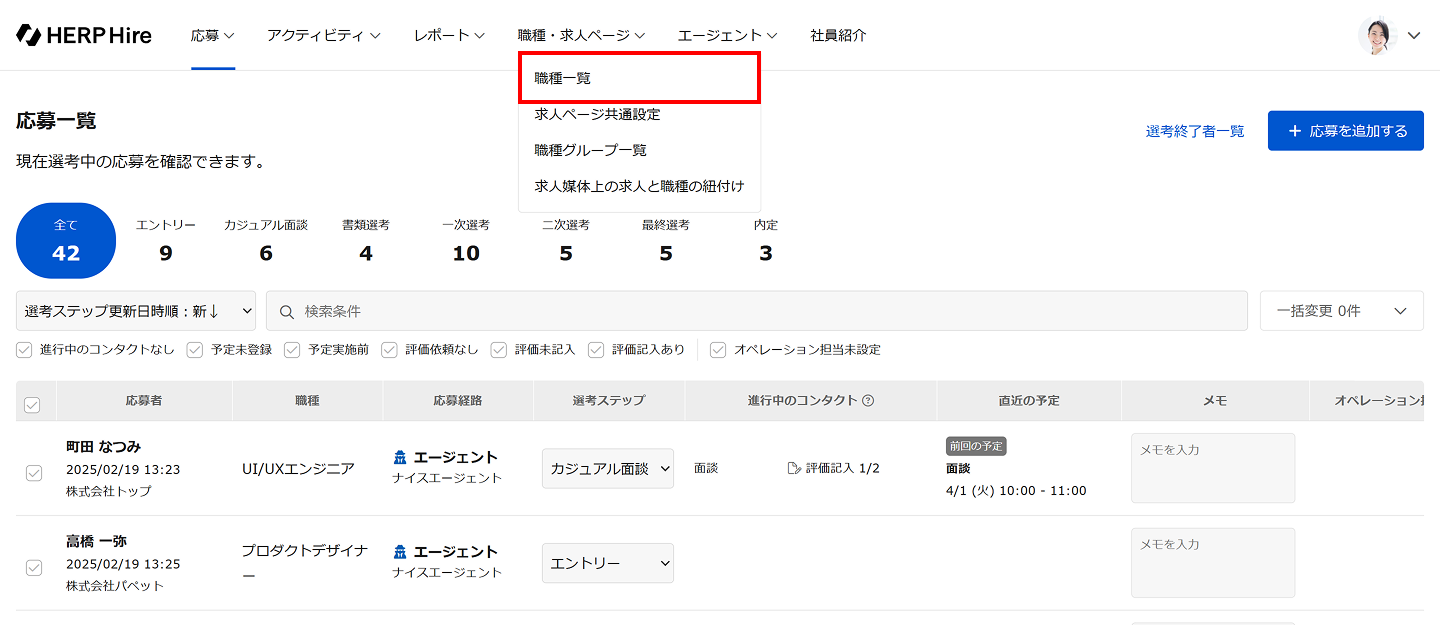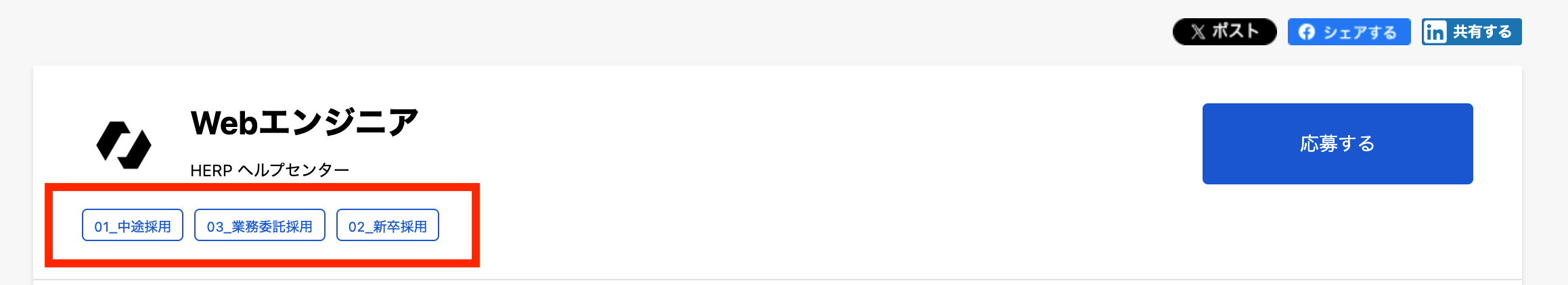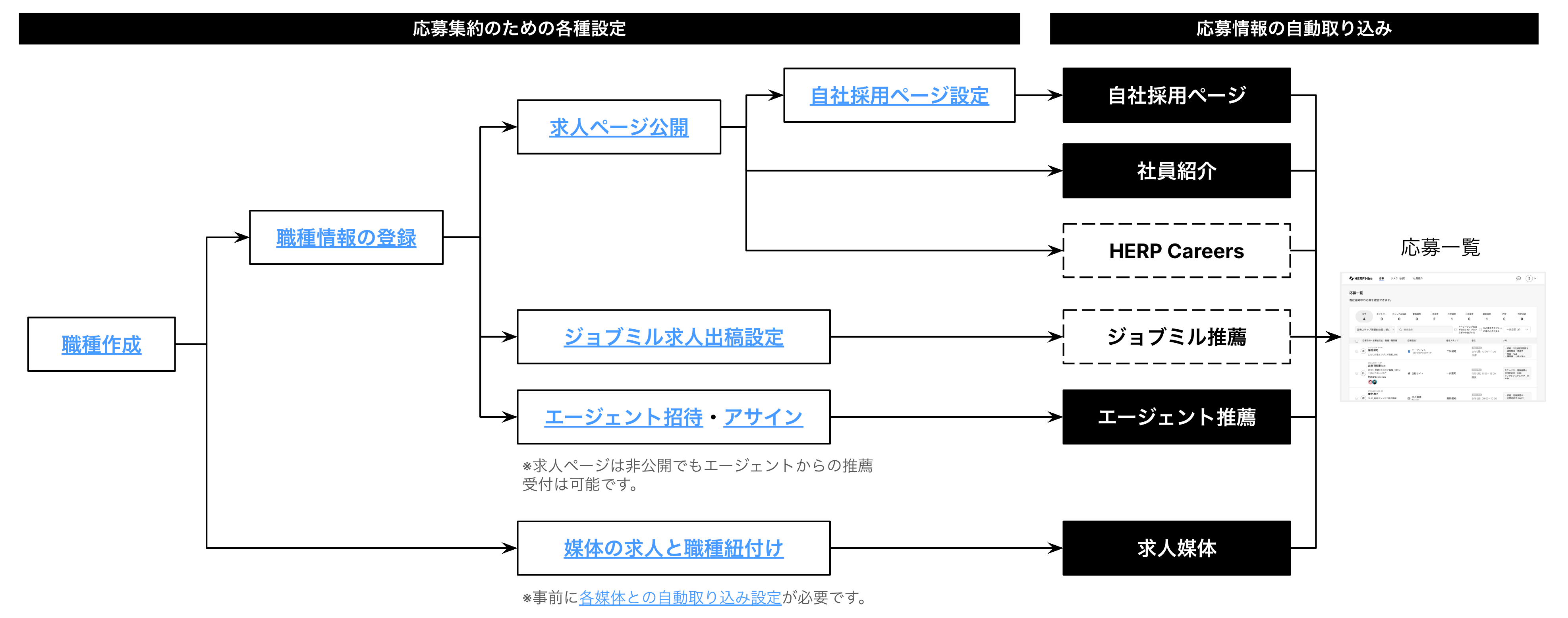 職種を作成することで各チャネルからの応募をHERP Hireに集約することができます。