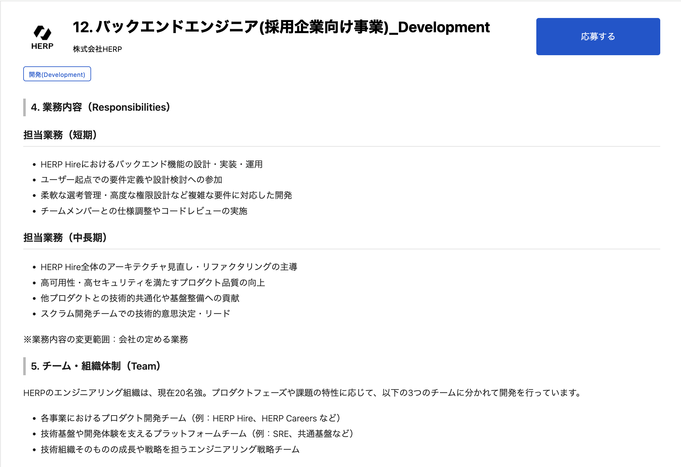 職種設定画面ではマークダウン記法が利用できます。詳しくは HERP Hireで使える書式(マークダウン)を知りたい からご確認ください。