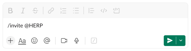 Slackチャンネルのメッセージ欄に 「/invite @HERP」と入力し、送信するとアプリを追加されます。