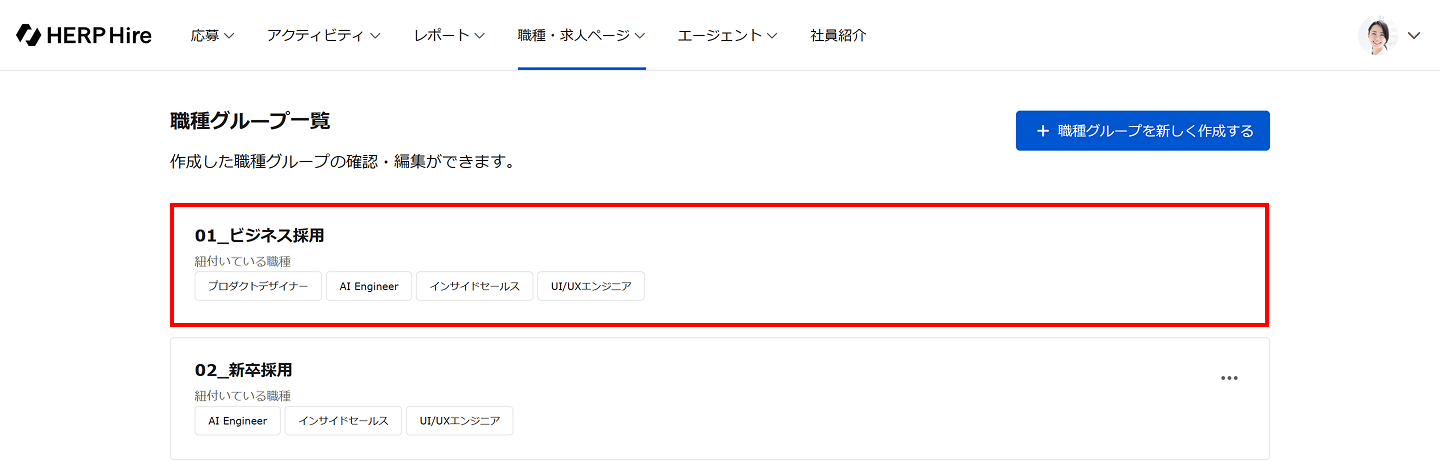 職種グループ一覧で通知設定を行いたい職種グループをクリック
