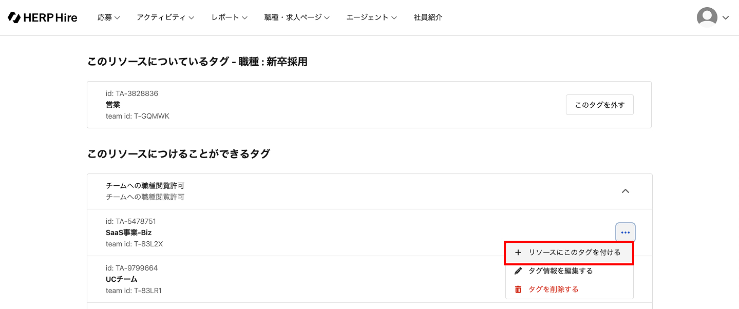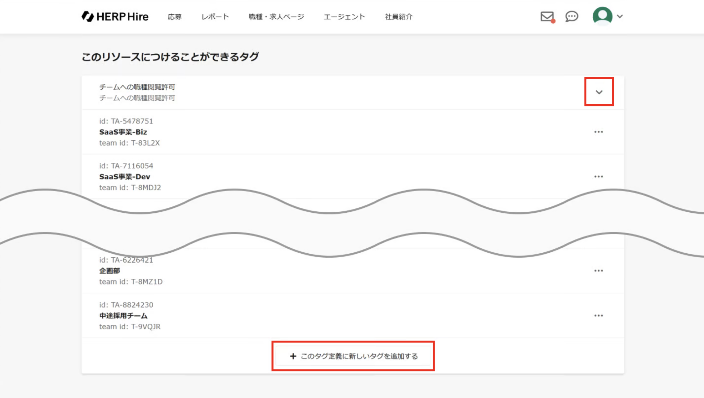 職種とチームを紐づけるには、「タグ」の作成が必要です。