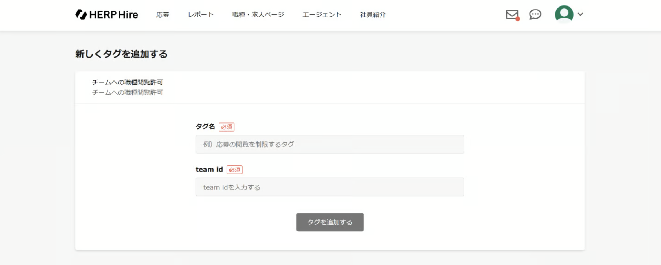 任意のタグ名と、紐付けたいチームのteam idを入力し「タグを追加する」にて作成を完了する