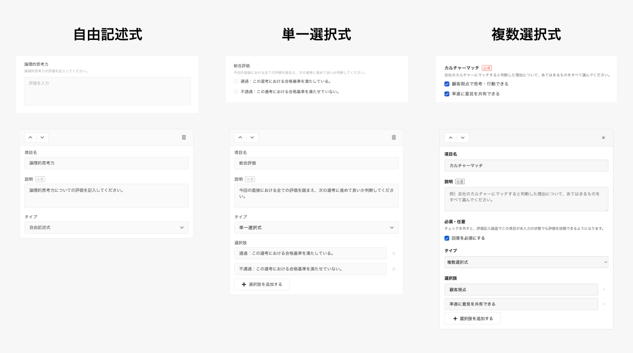 評価フォームをご準備いただく際に参考にしていただくためのテンプレート集です。
