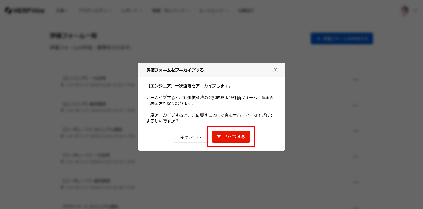 評価フォームを一度アーカイブすると、元に戻すことはできません。