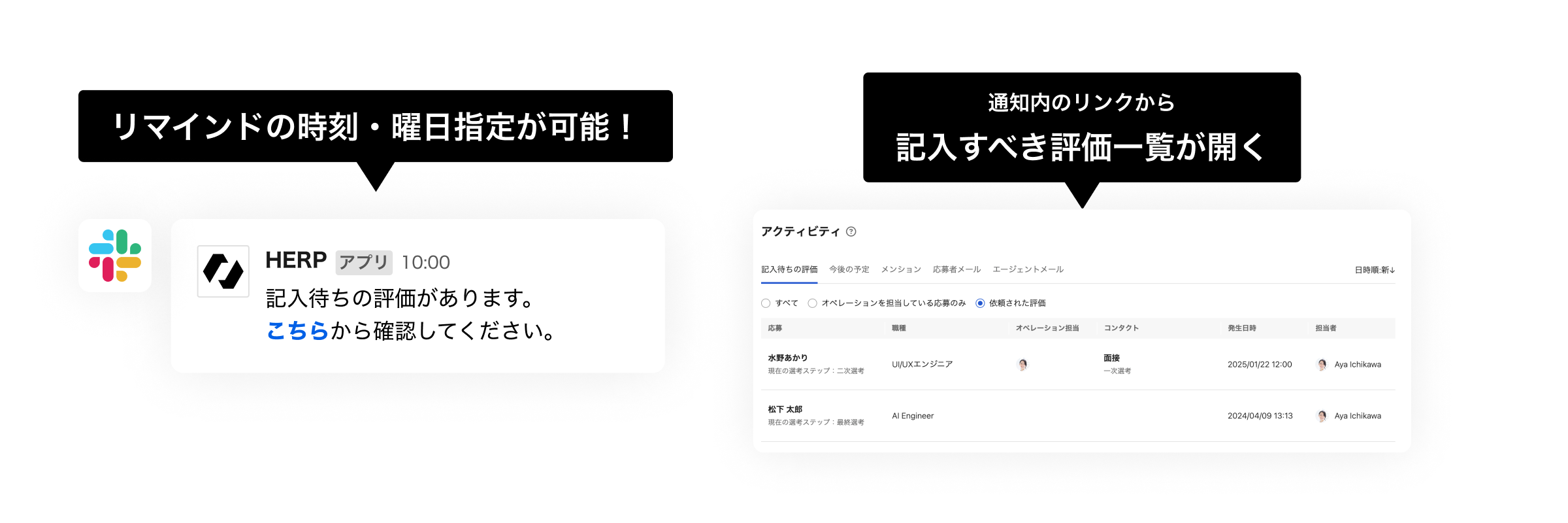 評価リマインド機能が有効なテナントのみお使いいただける機能です(利用には申請が必要です)。