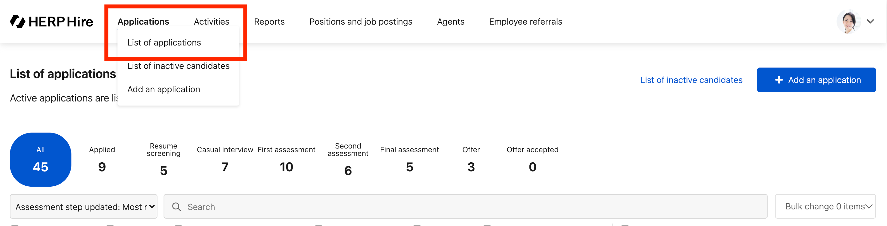 You can check the list of applicants by clicking on "Applications" in the upper left corner of the screen. If you are a guest member, only the applications you are assigned to will be displayed.