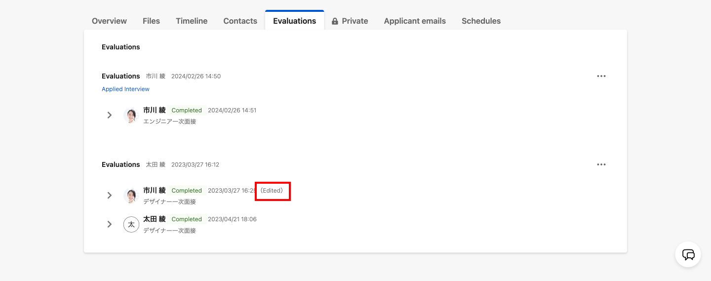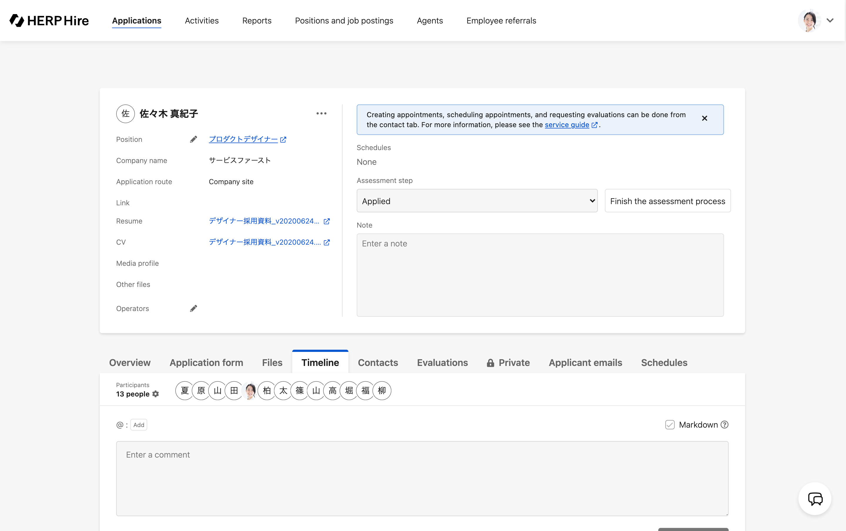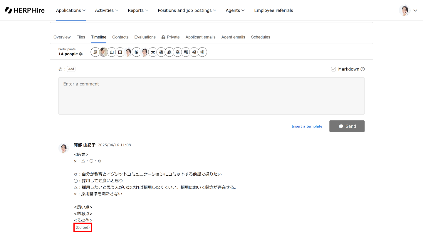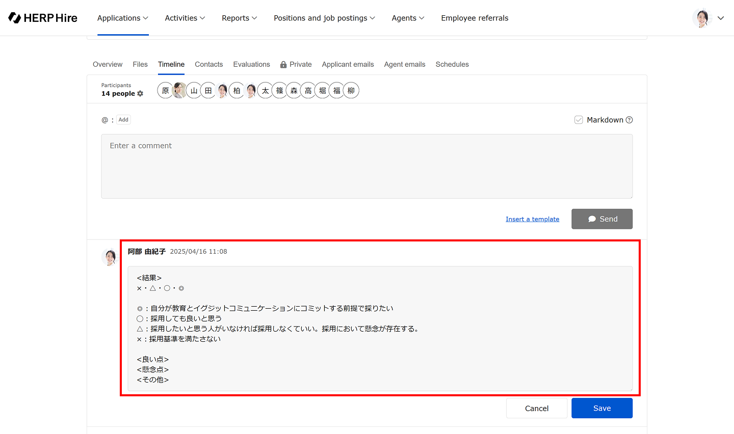 Timeline is where you can have internal discussions about the candidates with your team members.