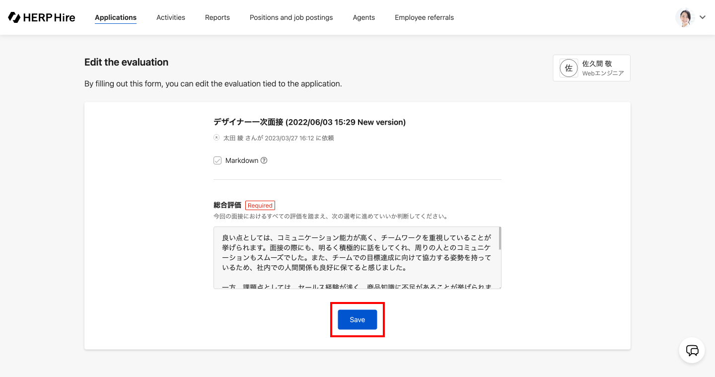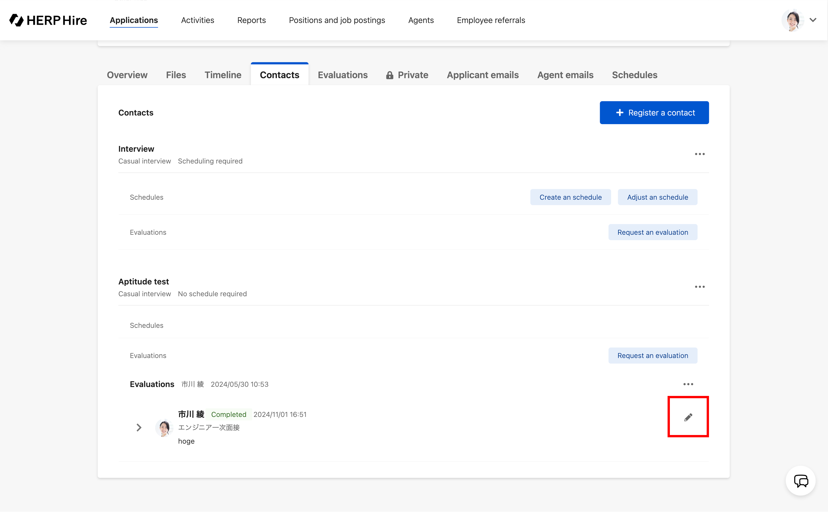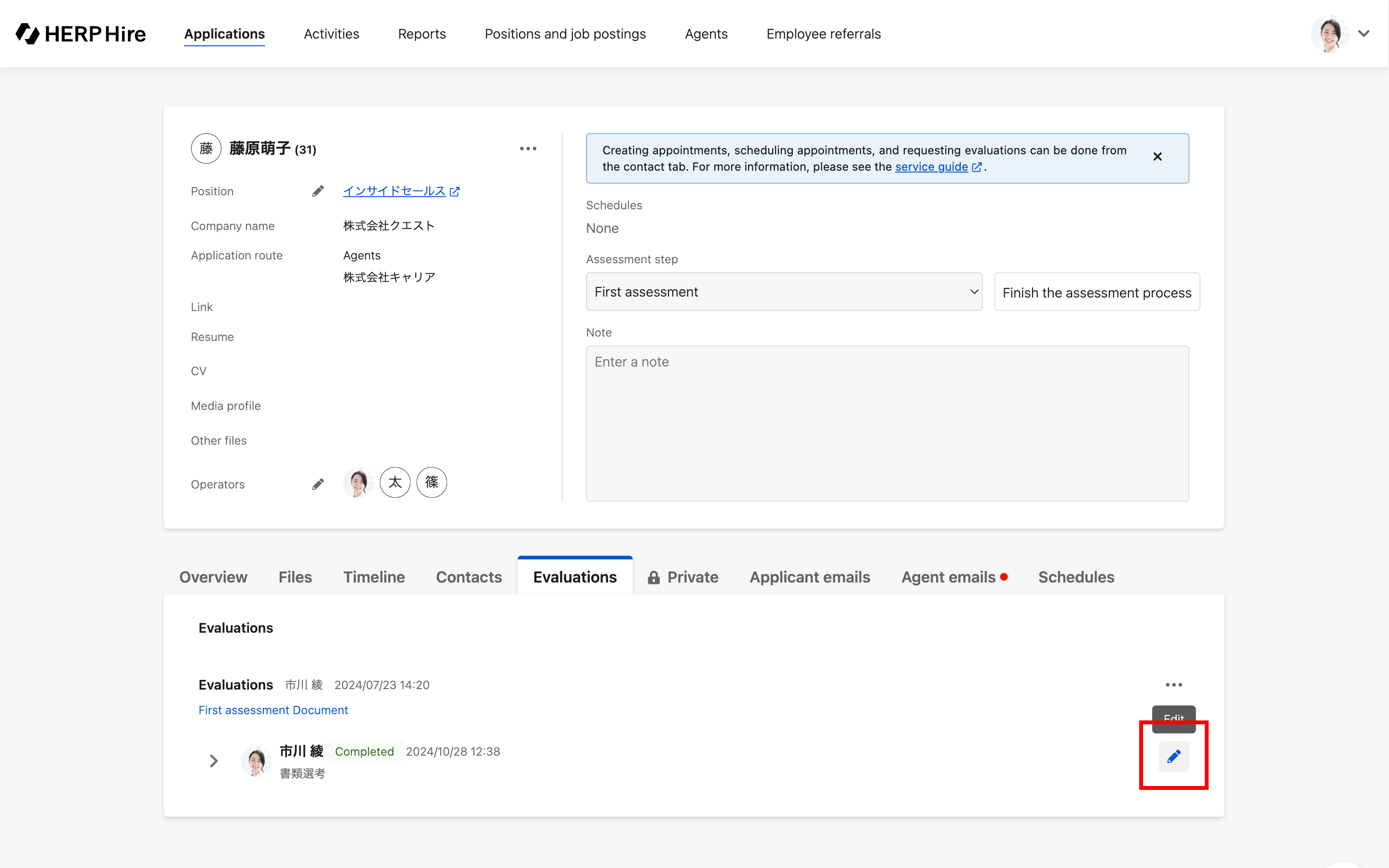 Click 'Edit the evaluation' of the evaluation you want to edit on the 'Evaluation' tab in Application details.