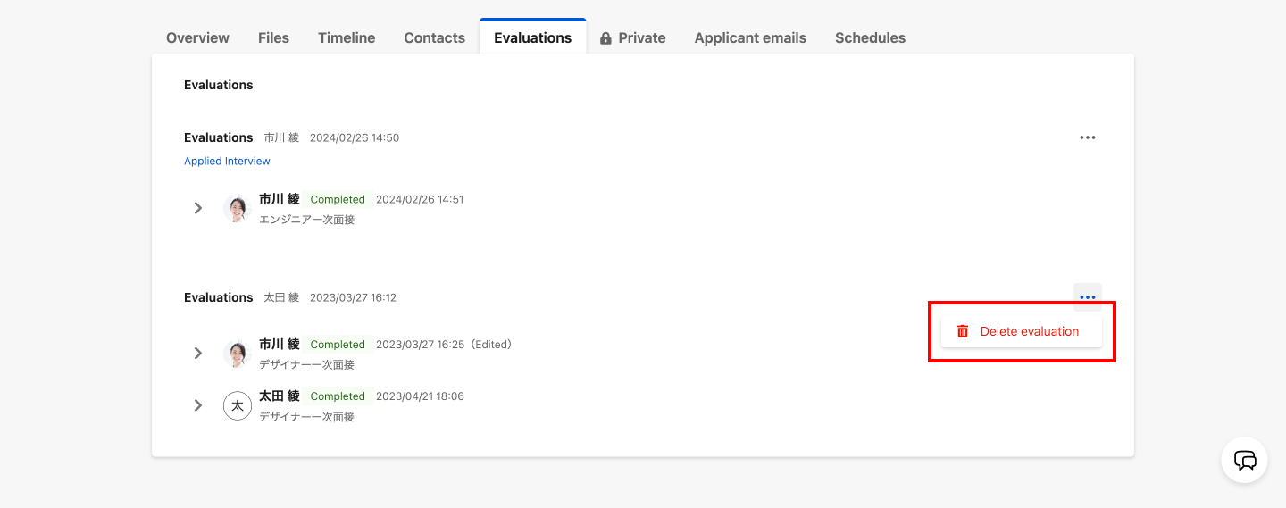 in the 'Evaluations' tab in Application details, click on the bin icon of the evaluation that has been posted.