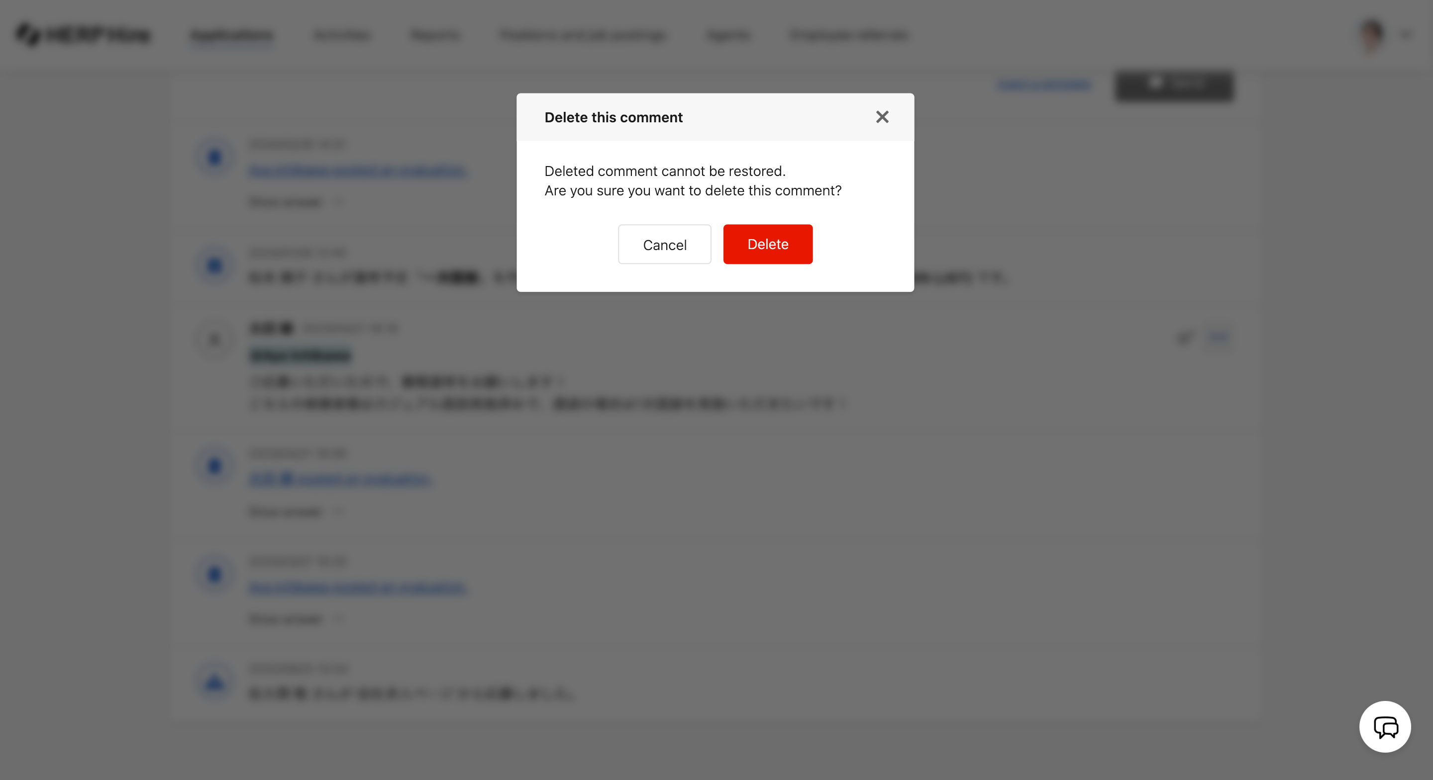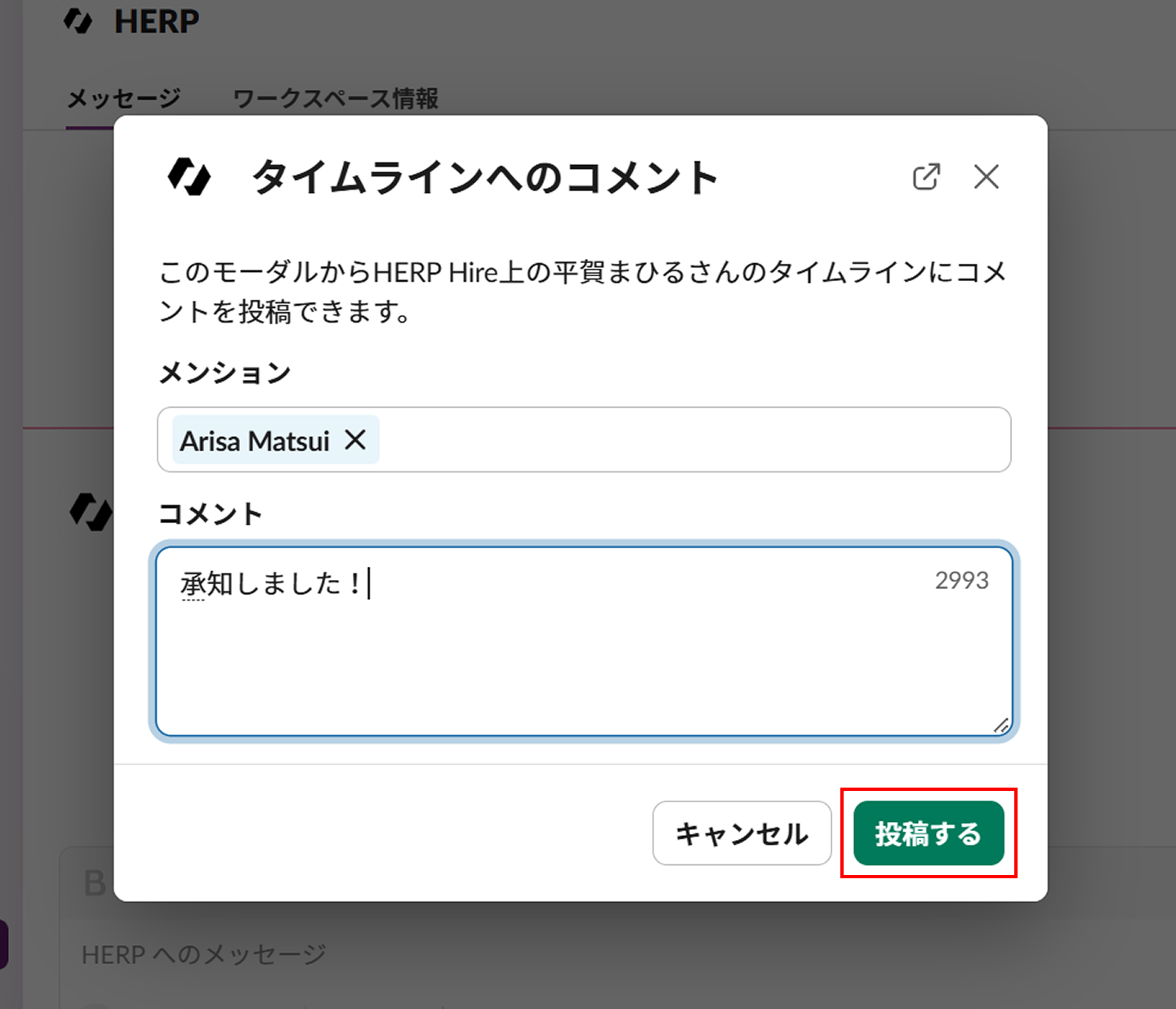 Comments you make will be posted on the HERP Hire timeline and notified in Slack.