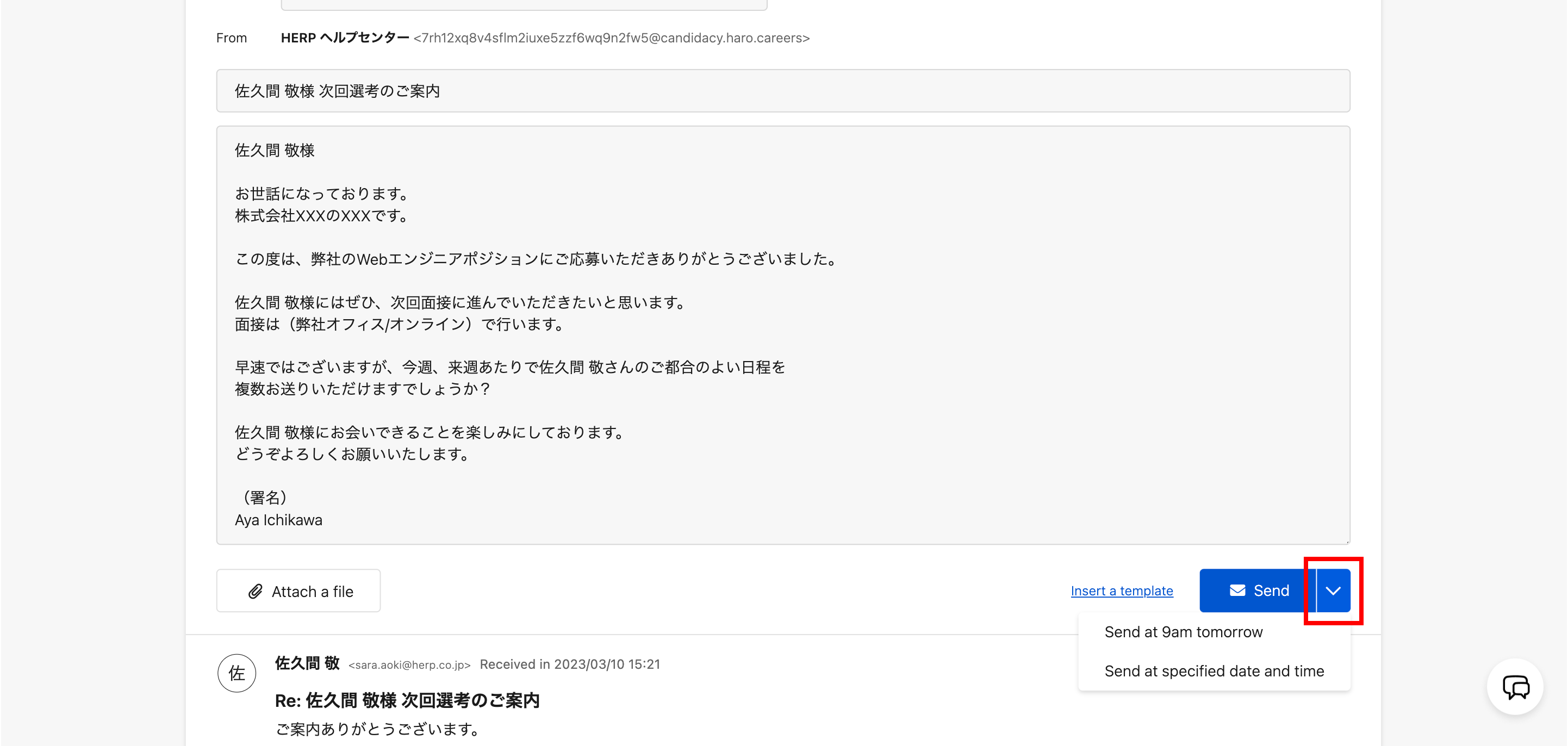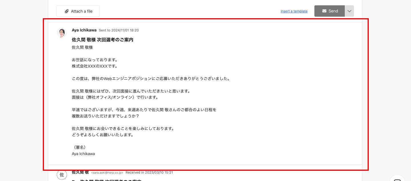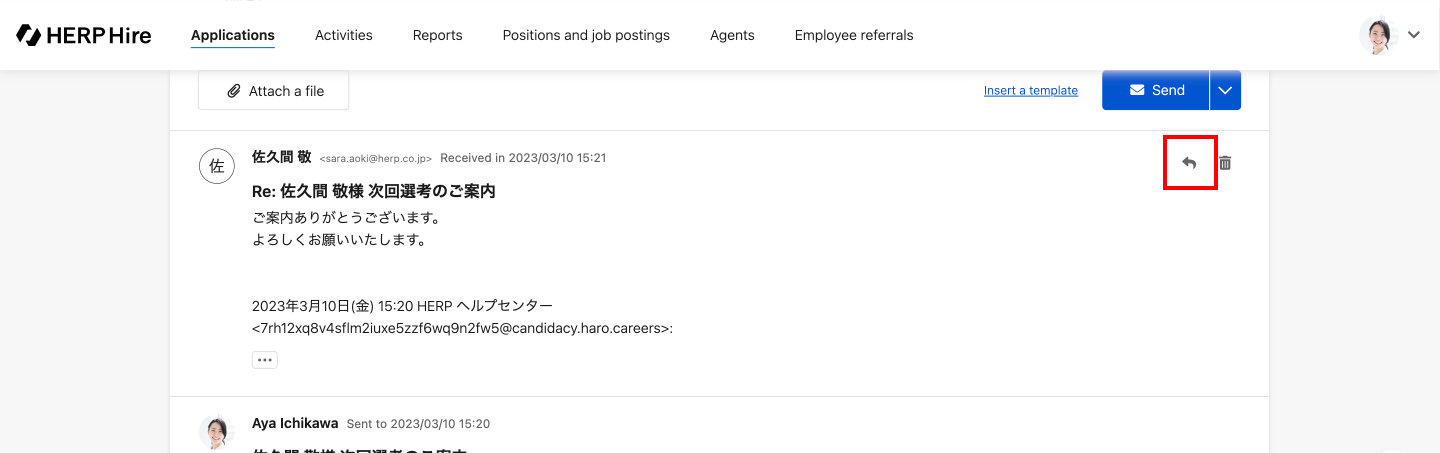 You can manage whether or not you need to reply to emails you receive. For information on how to do this, see Manage whether or not you need to reply to job application emails. * The link leads to a page in Japanese. Please use a translation tool to check.