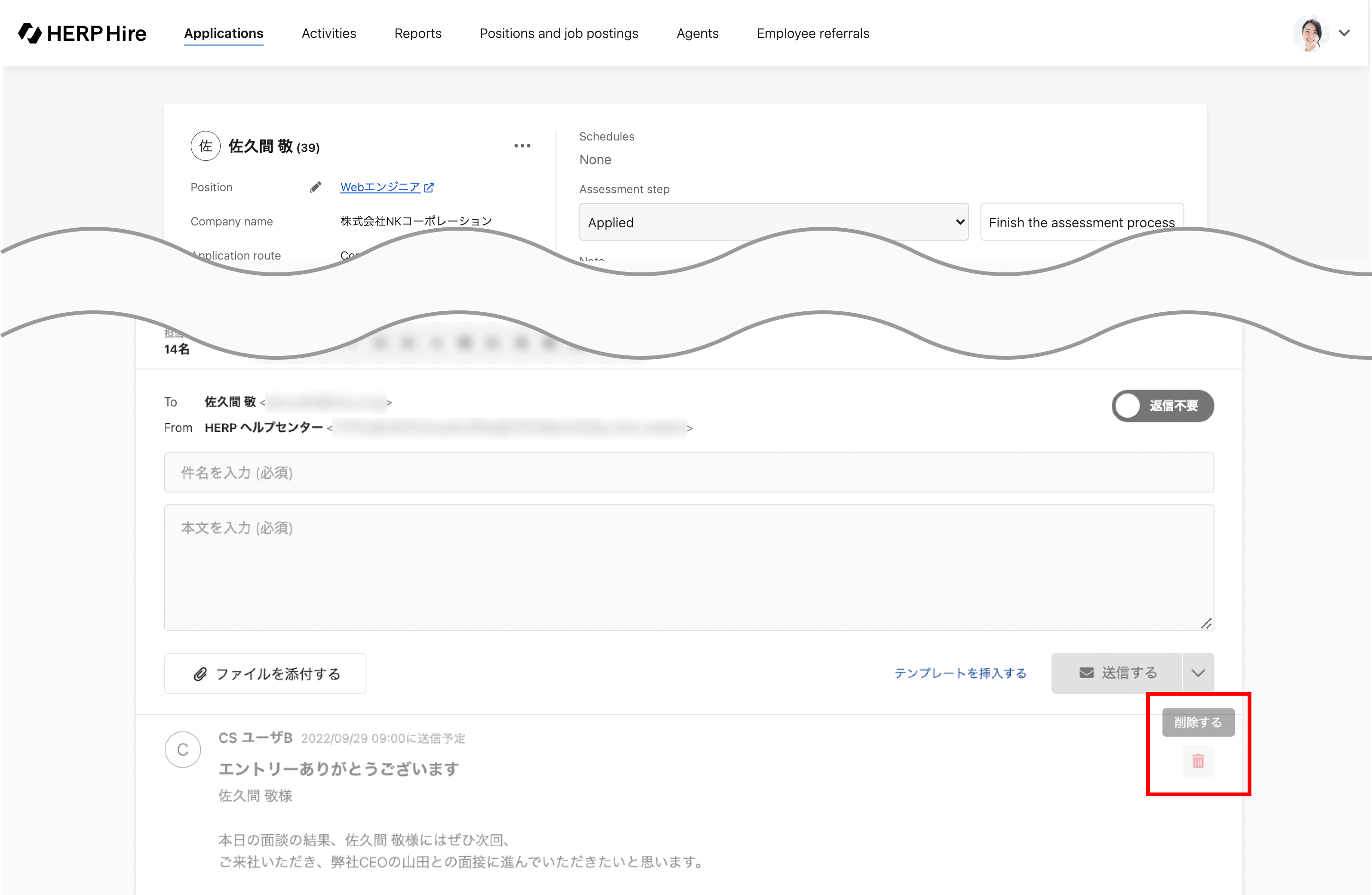 Schedule Applicant Email Hover over the email to be sent and the 'Delete' icon will appear.