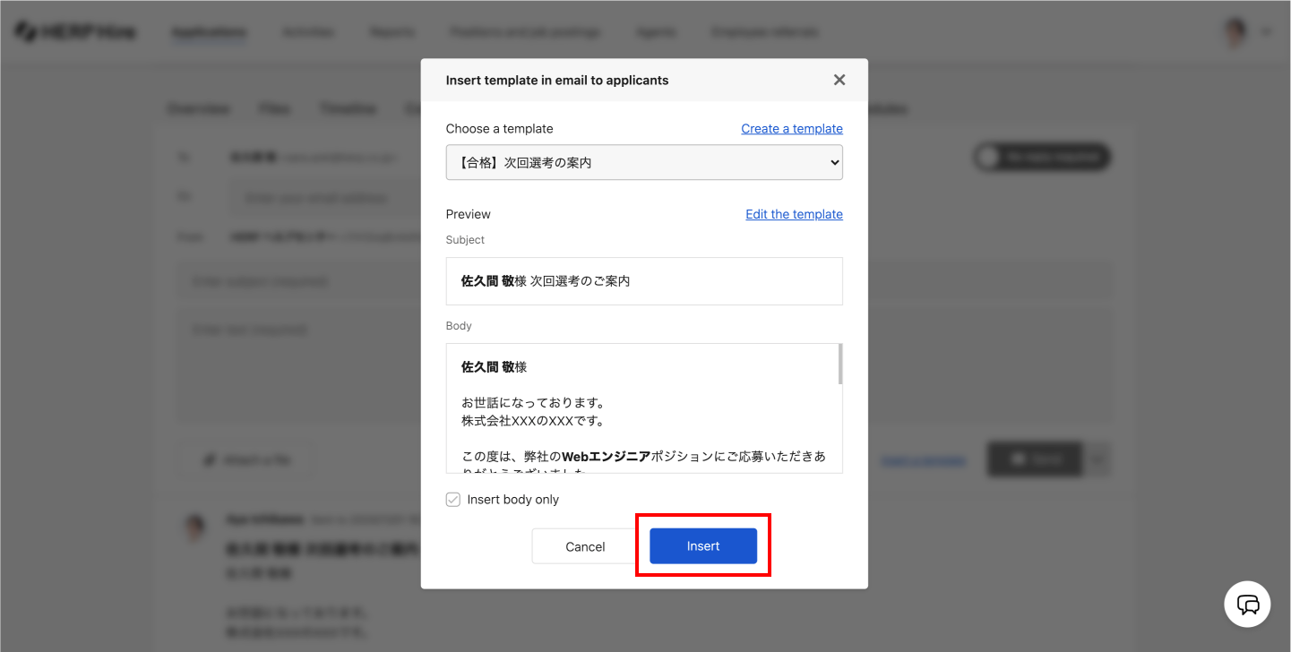 After selecting templates, click 'Insert' and the templates will be inserted into the subject line and body of the email.