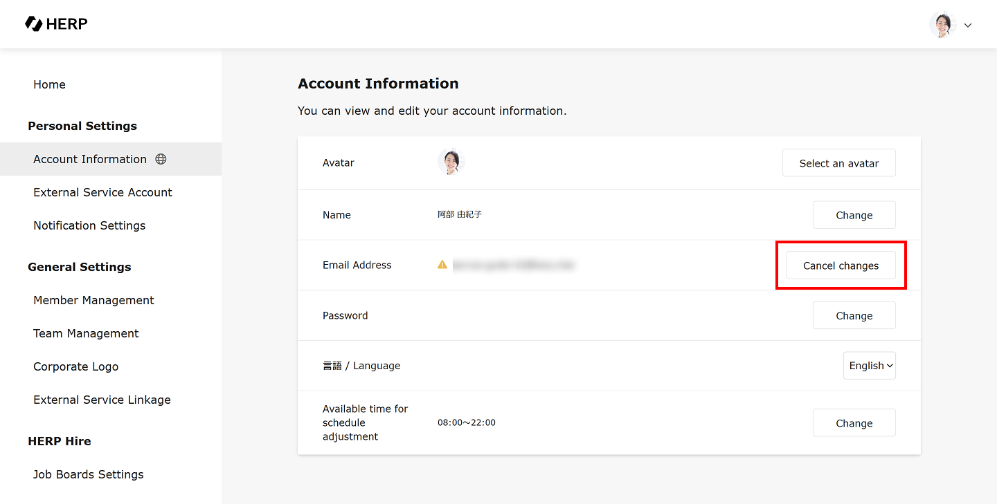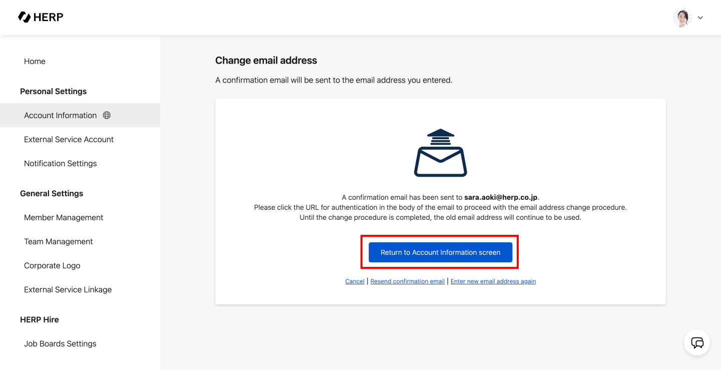 ※ You can also stop changing your email address in the middle of a change by clicking 'Cancel Changes', even from the Account Information screen.