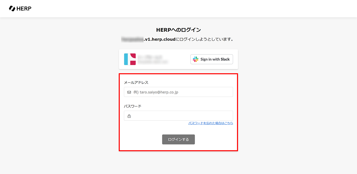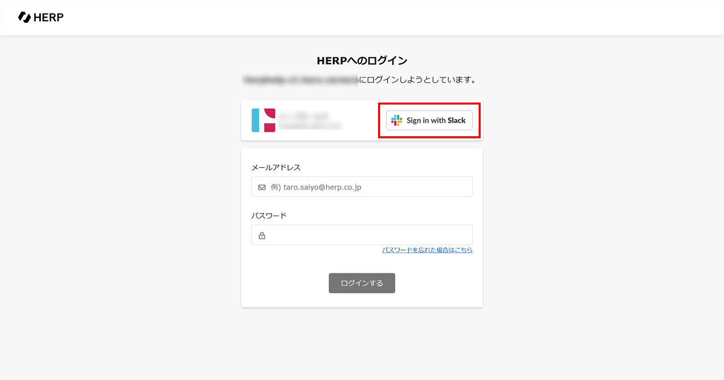If you have a slack account, please click "Sign in with Slack" to login. *If "Sign in with Slack" does not appear, your HERP administrator needs to enable the "Sign in with Slack" setting. * The link leads to a page in Japanese. Please use a translation tool to check.