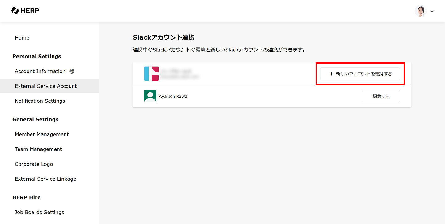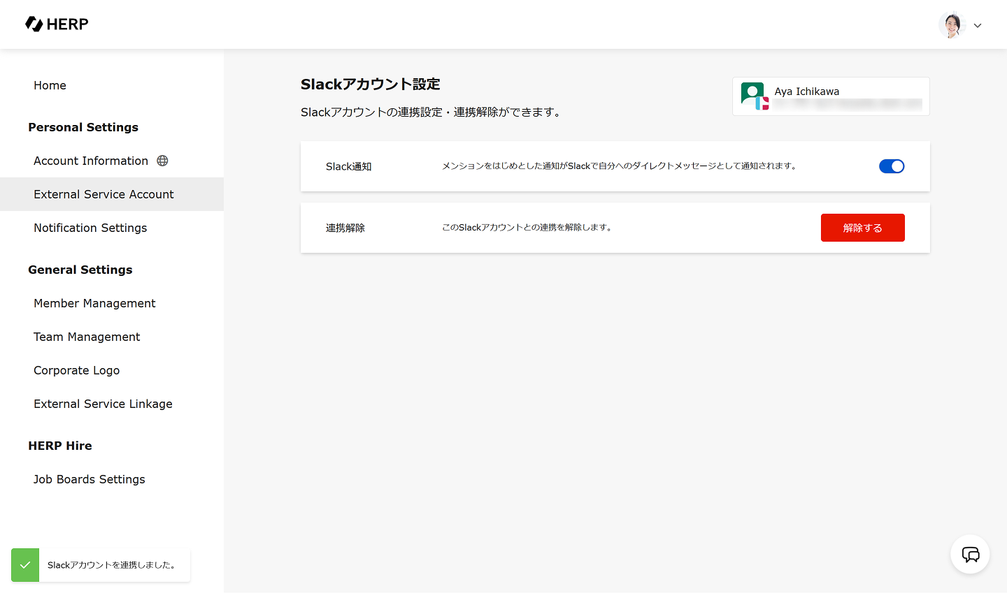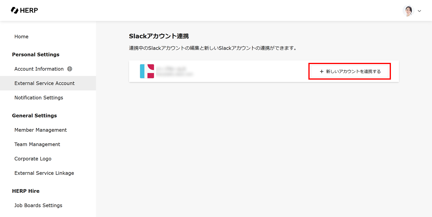 It is possible to link multiple Slack accounts to one HERP account. The prerequisite is that the Administrator has connected the Slack workspace to the HERP via external account integration.