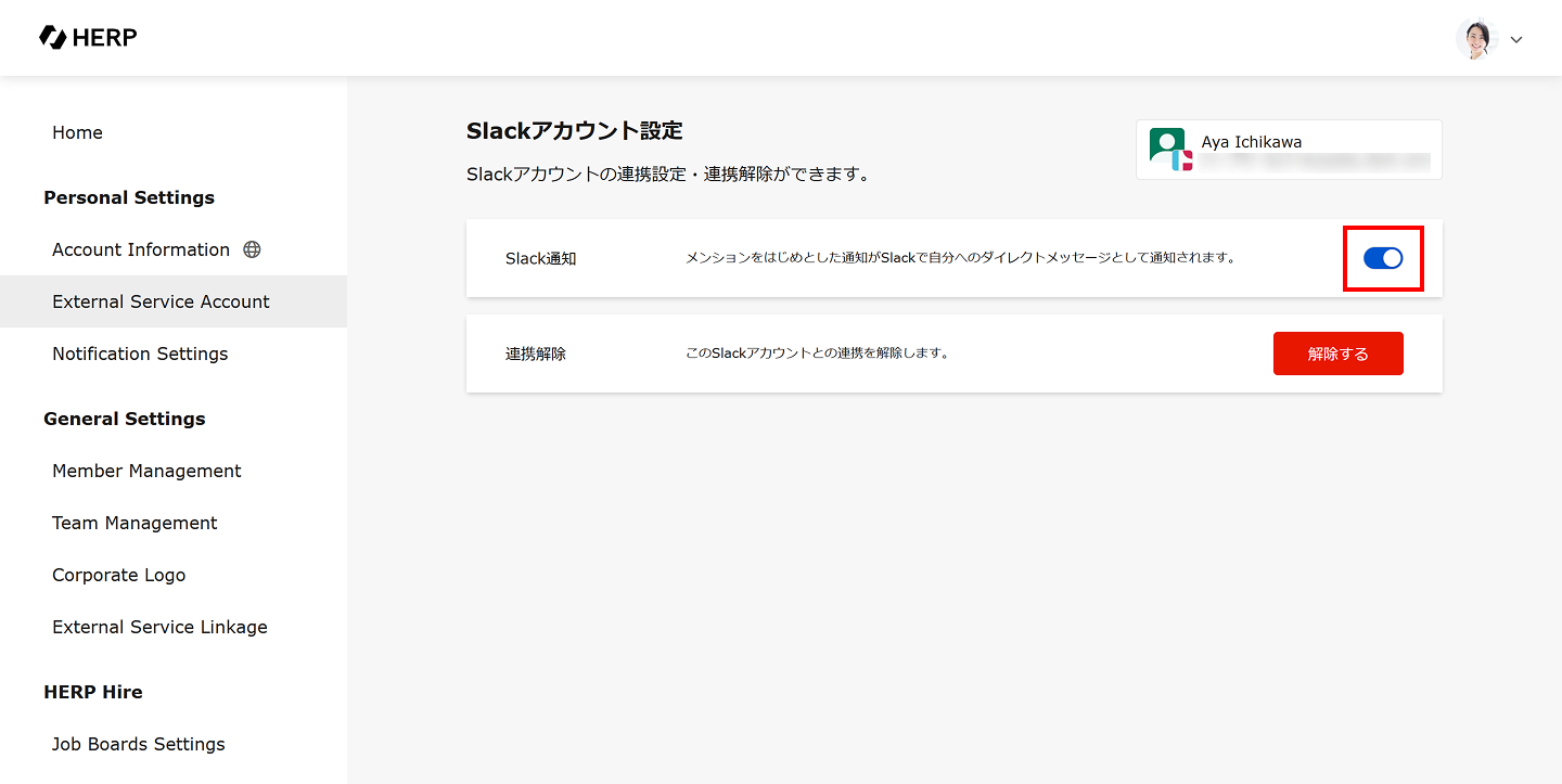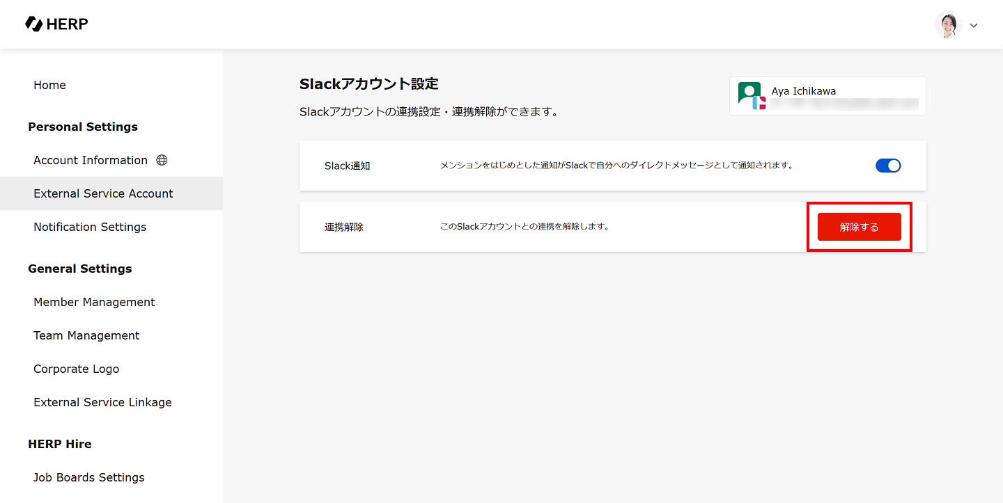The email address of the Slack account must match the email address of the HERP account to be connected in this way.