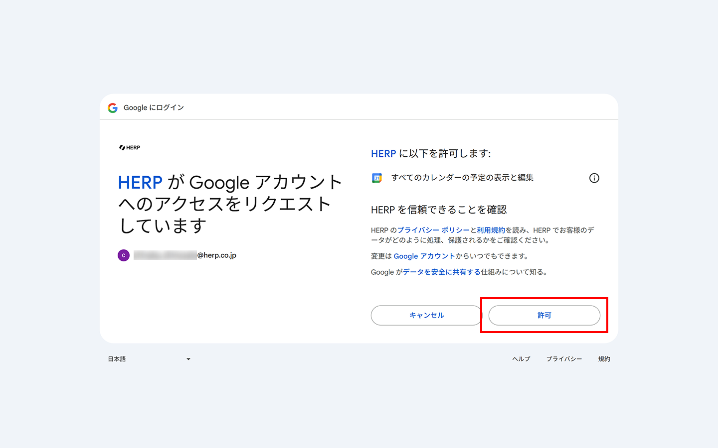 when the Google account access permission screen is displayed, check the 'View and edit all calendar appointments' check box and select 'Continue' to complete.
