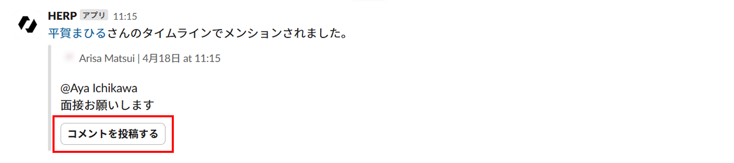 Click 'CommentSubmit' at the bottom of notifications to the Slack channel and DMs from the HERP application.