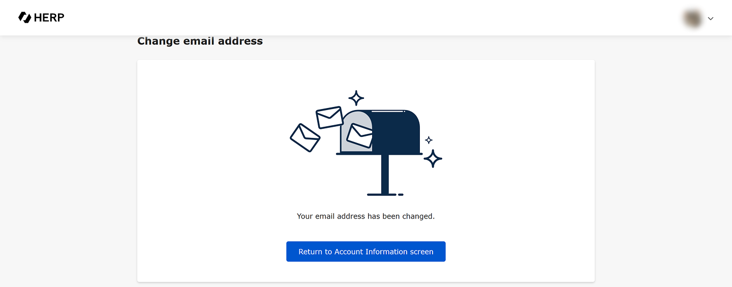 This completes the email address change. Click 'Return to Account Information screen' to exit.