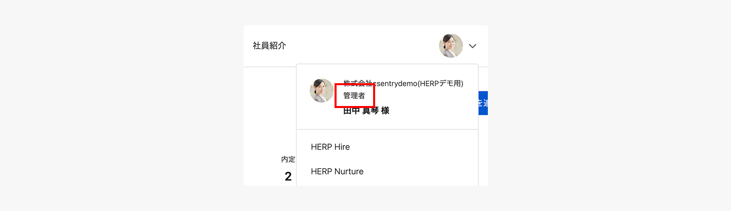 ヘッダー右、ご自身のアバターアイコンをクリックすると権限が確認できます。
