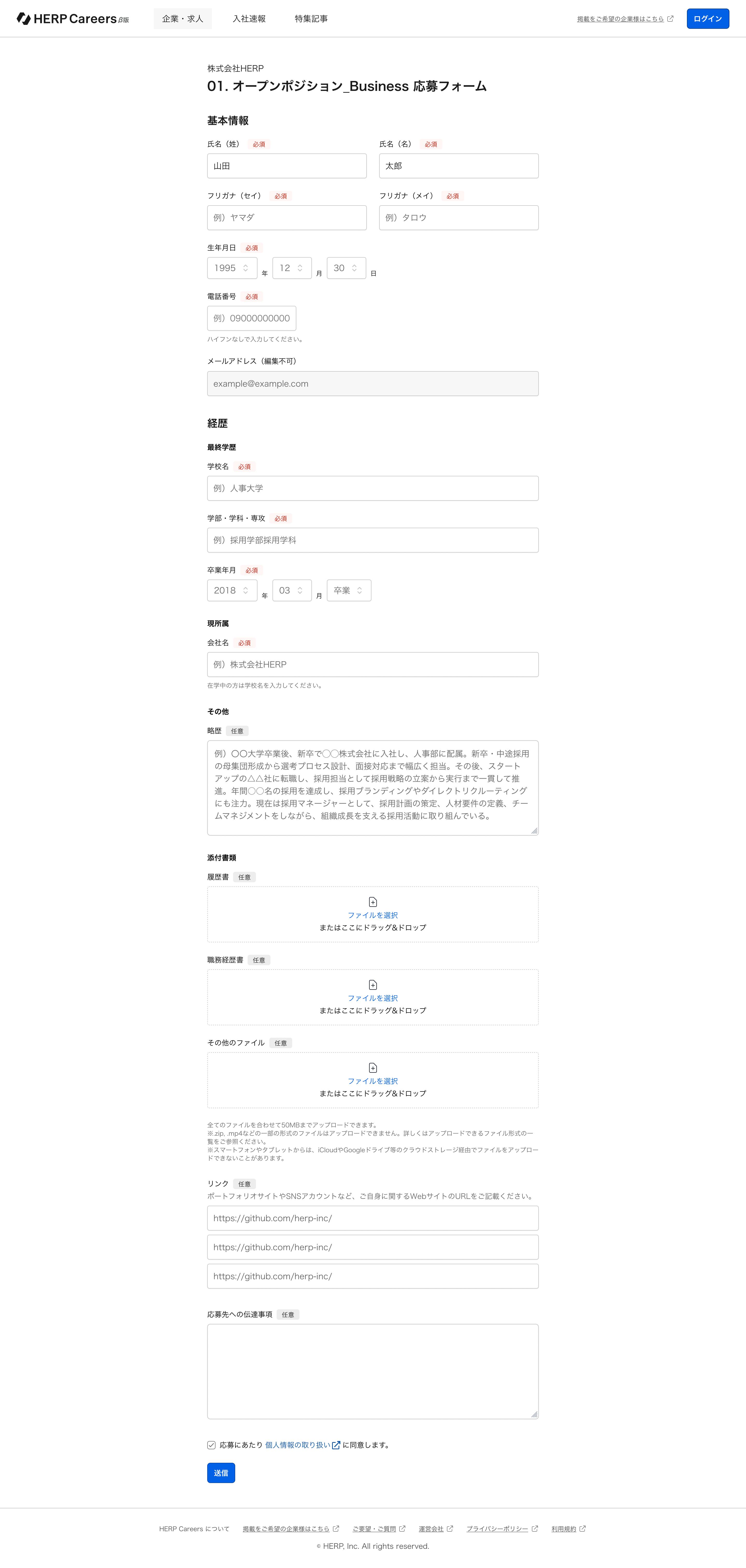HERP Careerに掲載される求人の応募フォームはHERP Career独自のものになります。HERP Careerの応募フォームをカスタマイズすることはできません。