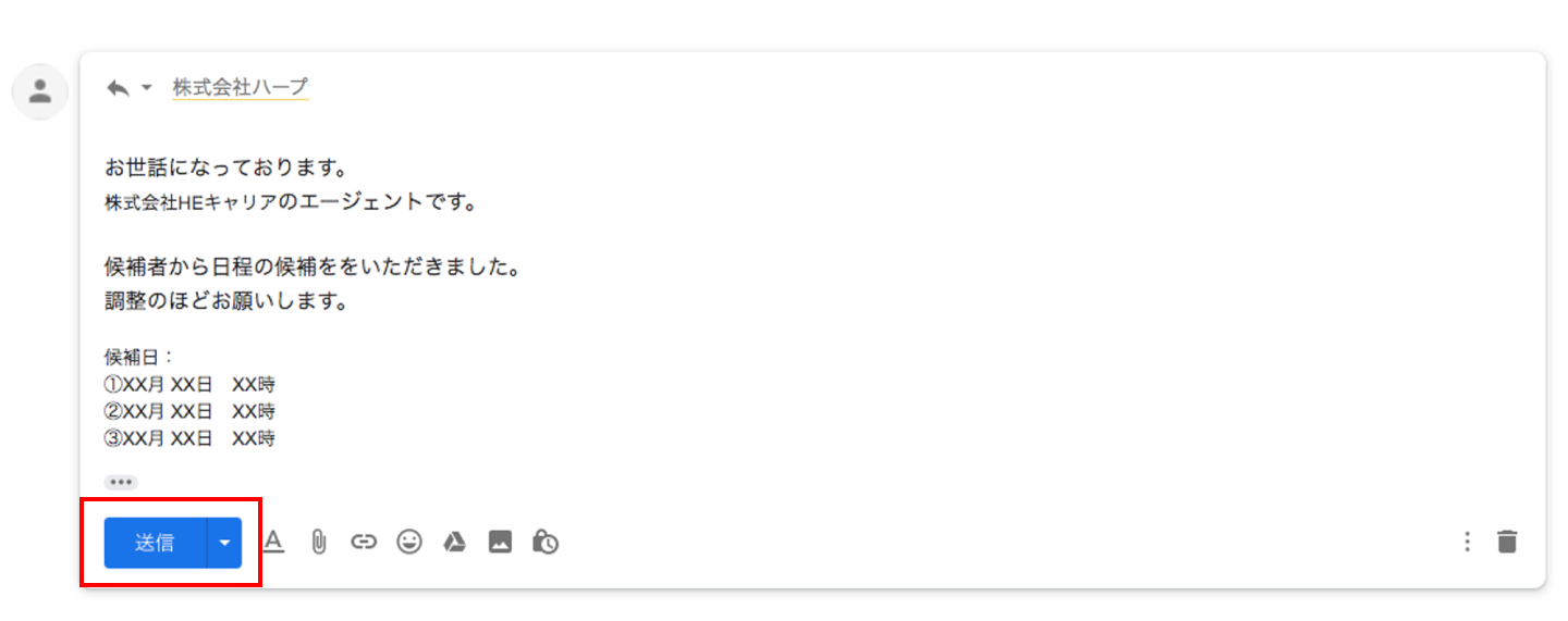 ・「(英数字のランダムな文字列)@agent.herp.cloud 」をToに指定していただくことで特定の応募者について推薦先企業とやりとりが可能になります