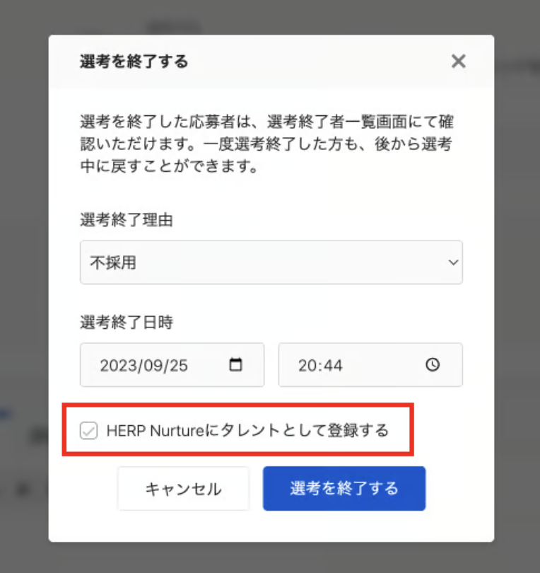 HERP Hire で選考終了時、HERP Nurture にタレントとして登録しても HERP Hire からデータが消えることはありません。