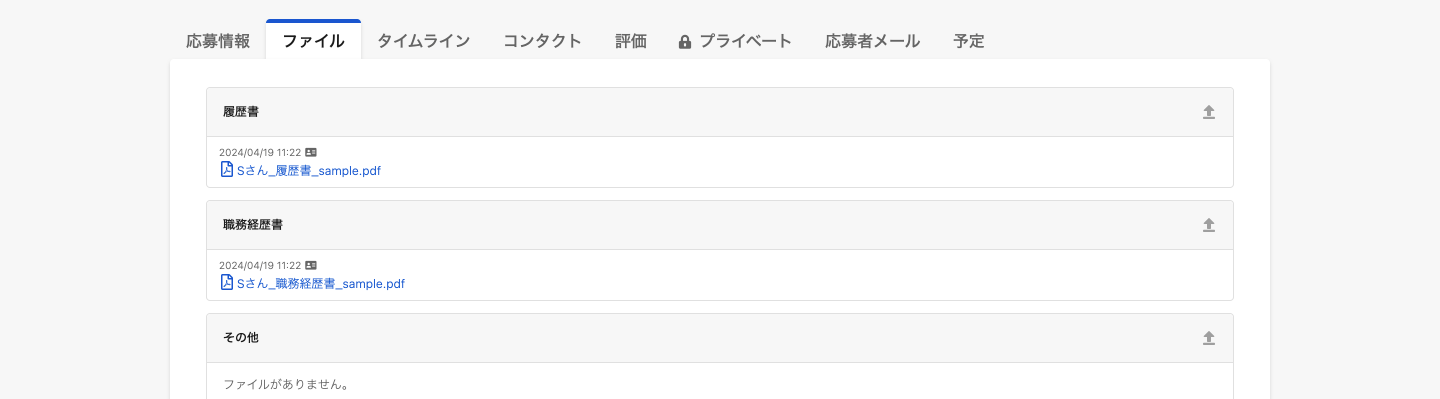 書類選考に限らず全ての評価依頼でファイルが添付されます