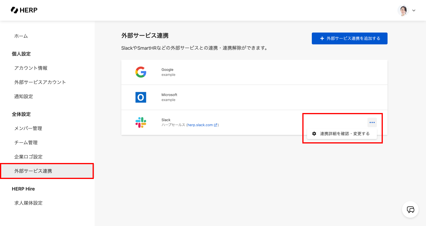 連携中のSlackの「連携詳細を確認・変更する」をクリック