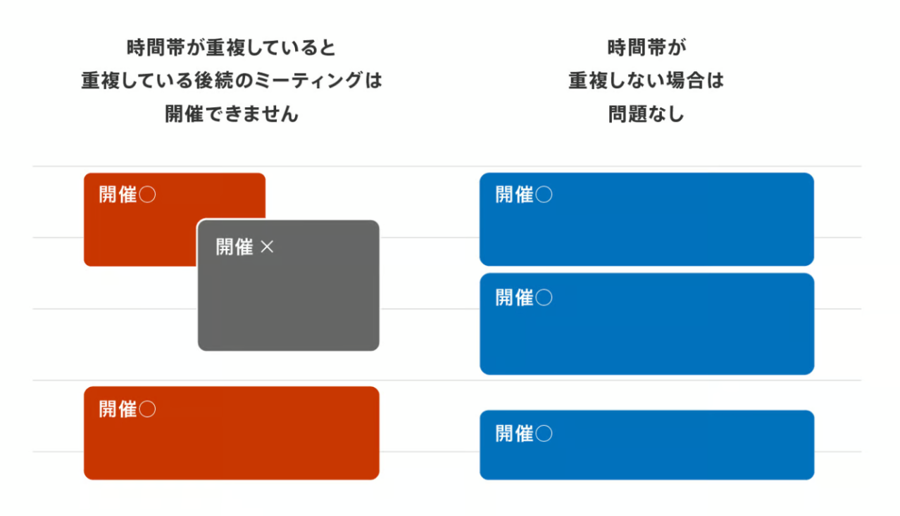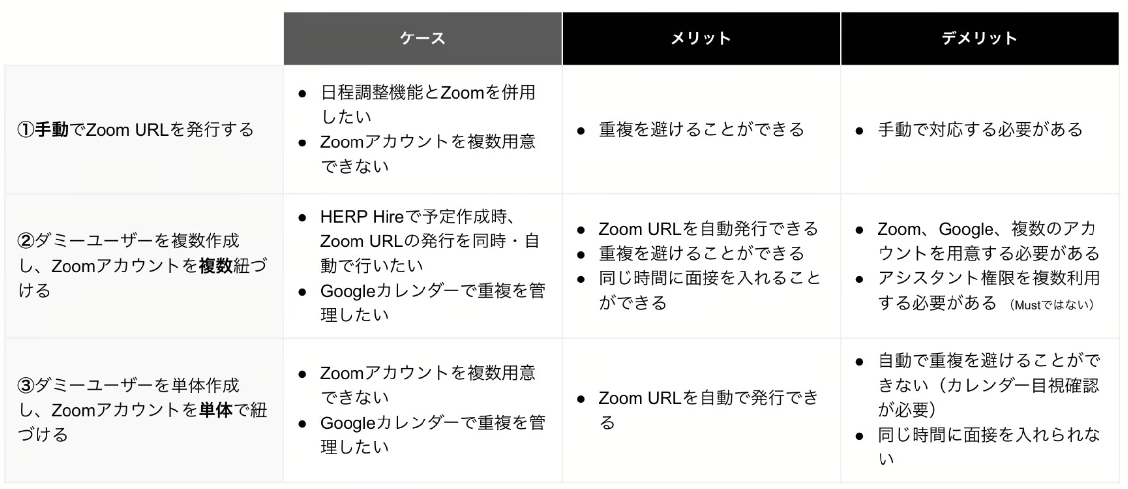 • → よって、意図せず候補者がZoomミーティングに参加できない、あるいは開催できない可能性を鑑み、任意のZoomユーザーがホストとなるミーティングは時間帯が重複しないように運用する必要があります。